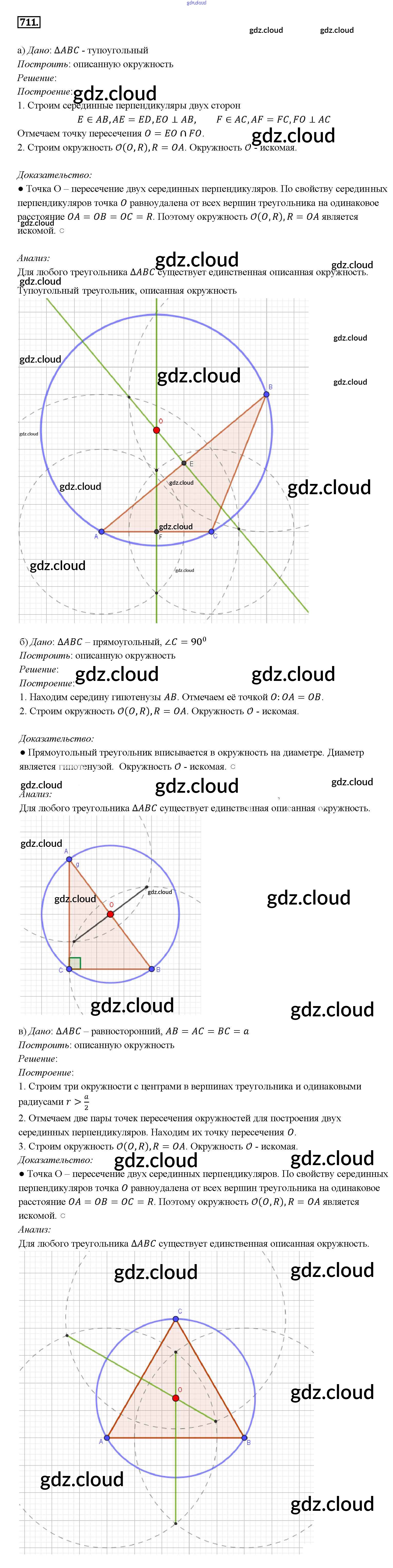 Ответ на задание 711 Учебник Геометрия за 7, 8, 9 (седьмой, восьмой, девятый) класс Атанасян, Бутузов, Кадомцев 2010