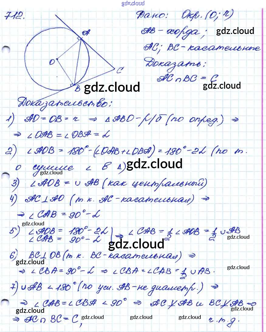 Ответ на задание 712 Учебник Геометрия за 7, 8, 9 (седьмой, восьмой, девятый) класс Атанасян, Бутузов, Кадомцев 2010