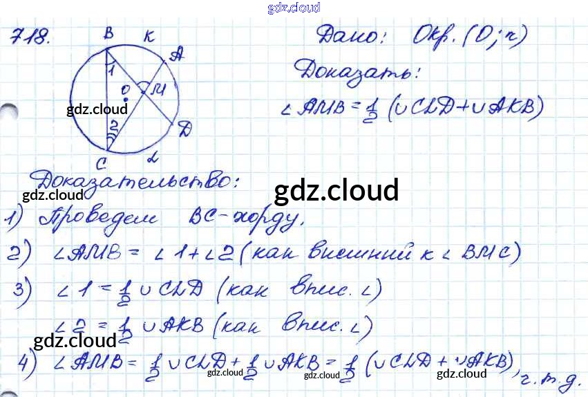 Ответ на задание 718 Учебник Геометрия за 7, 8, 9 (седьмой, восьмой, девятый) класс Атанасян, Бутузов, Кадомцев 2010