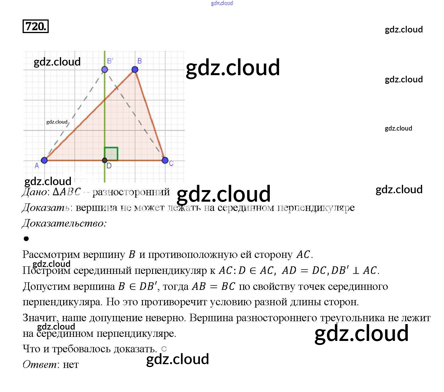 Ответ на задание 720 Учебник Геометрия за 7, 8, 9 (седьмой, восьмой, девятый) класс Атанасян, Бутузов, Кадомцев 2010