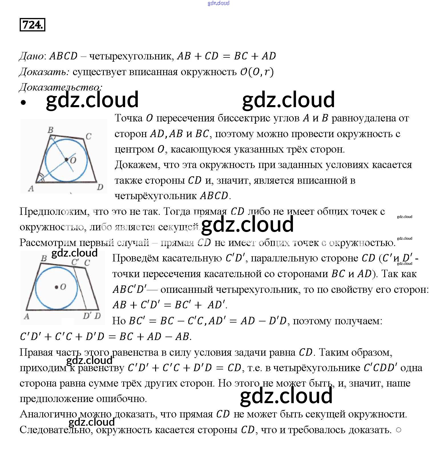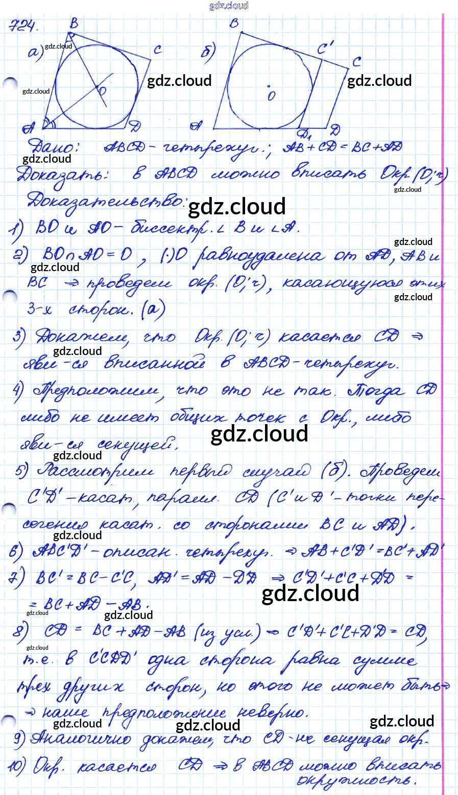 Ответ на задание 724 Учебник Геометрия за 7, 8, 9 (седьмой, восьмой, девятый) класс Атанасян, Бутузов, Кадомцев 2010