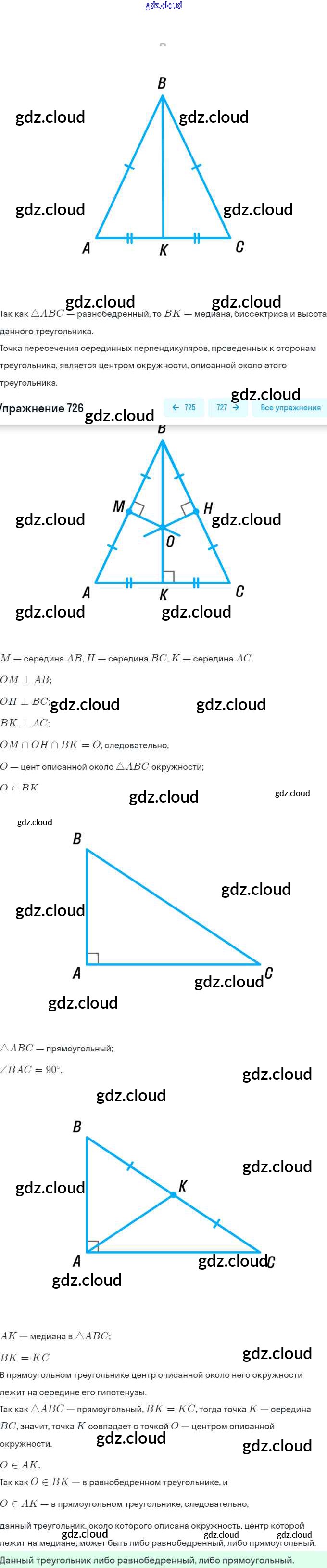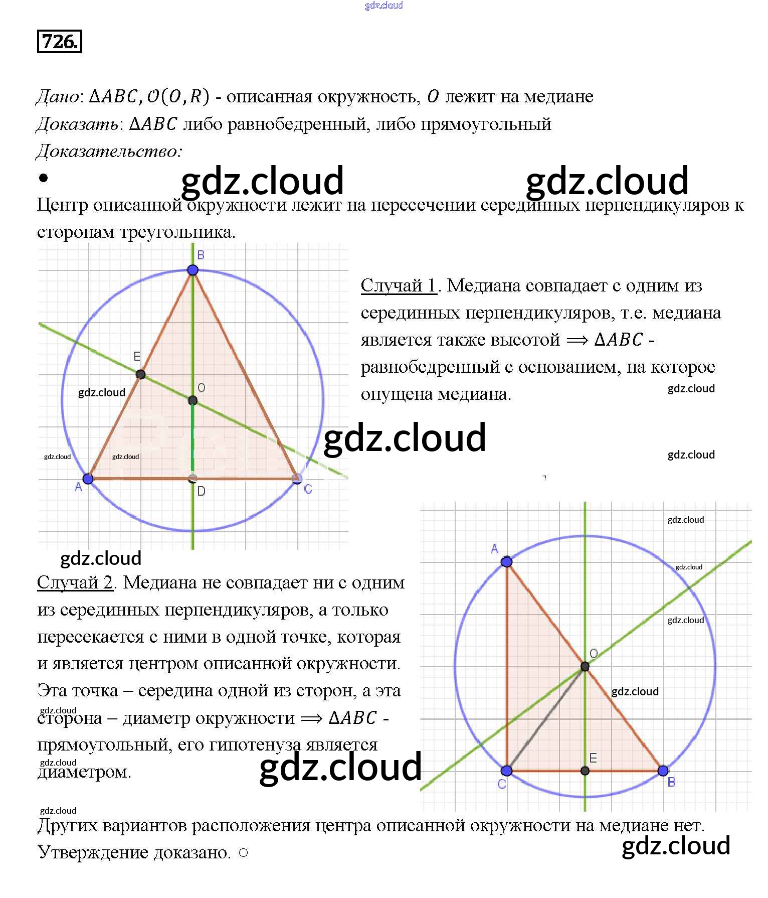 Ответ на задание 726 Учебник Геометрия за 7, 8, 9 (седьмой, восьмой, девятый) класс Атанасян, Бутузов, Кадомцев 2010