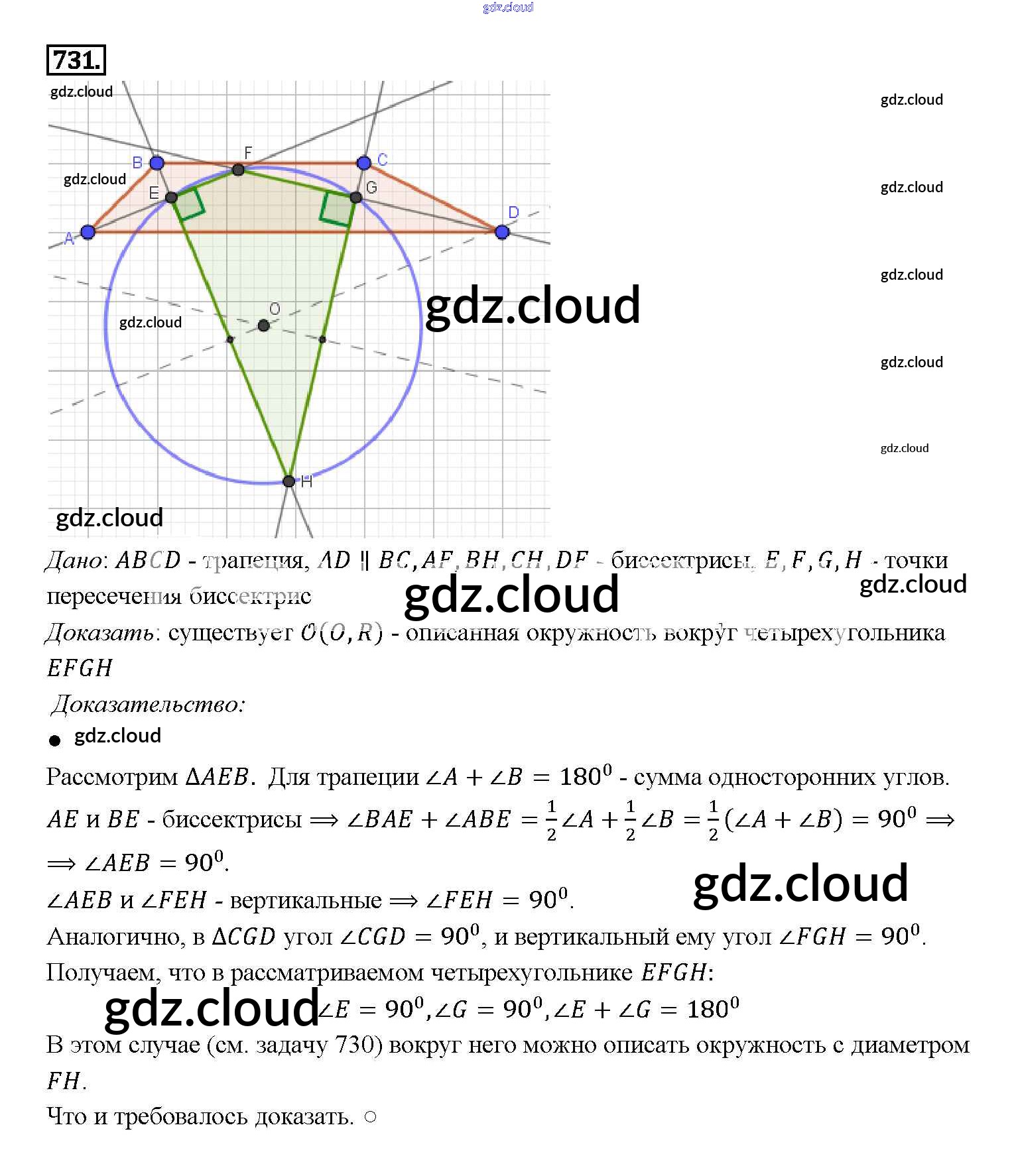 Ответ на задание 731 Учебник Геометрия за 7, 8, 9 (седьмой, восьмой, девятый) класс Атанасян, Бутузов, Кадомцев 2010