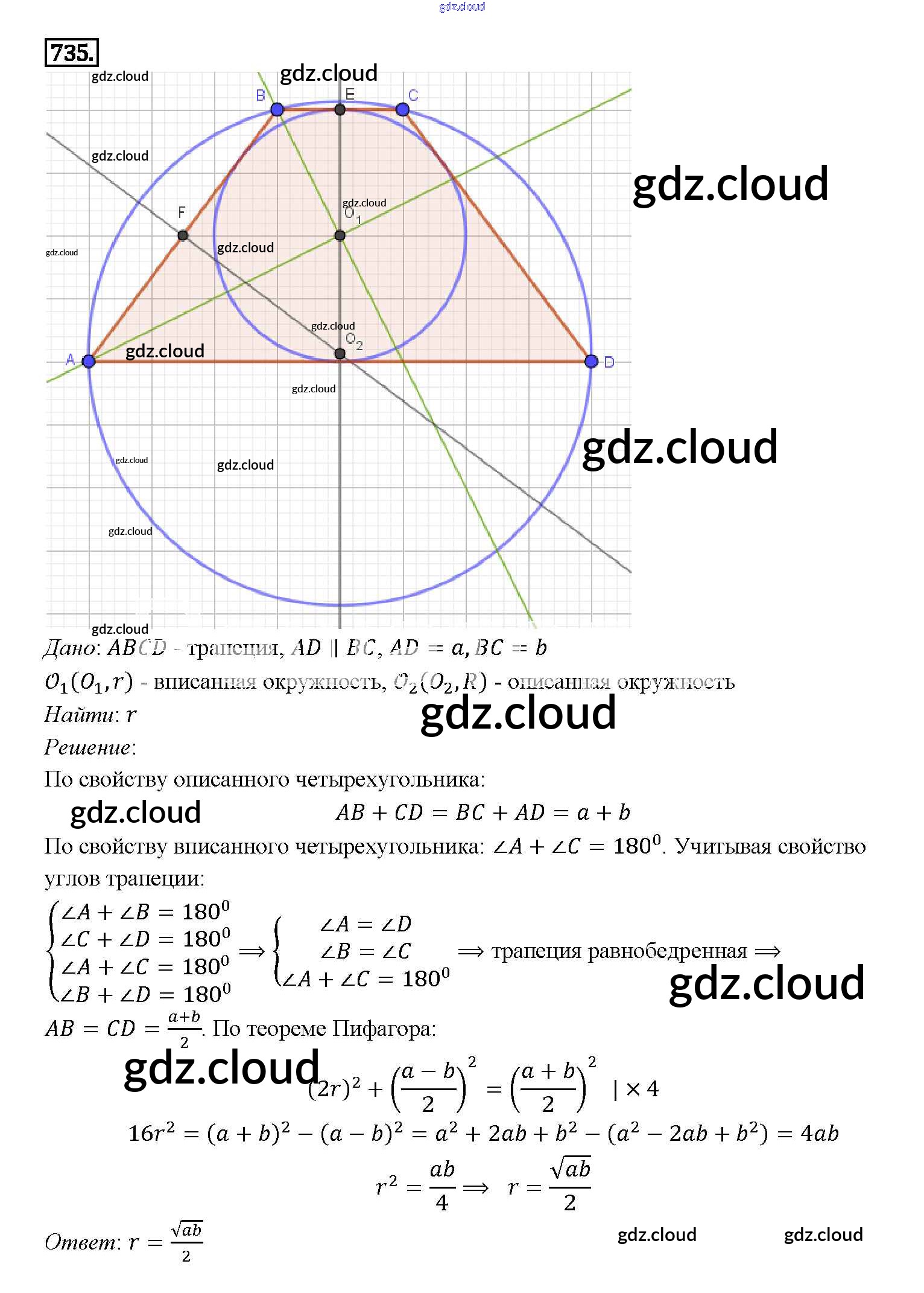 Ответ на задание 735 Учебник Геометрия за 7, 8, 9 (седьмой, восьмой, девятый) класс Атанасян, Бутузов, Кадомцев 2010