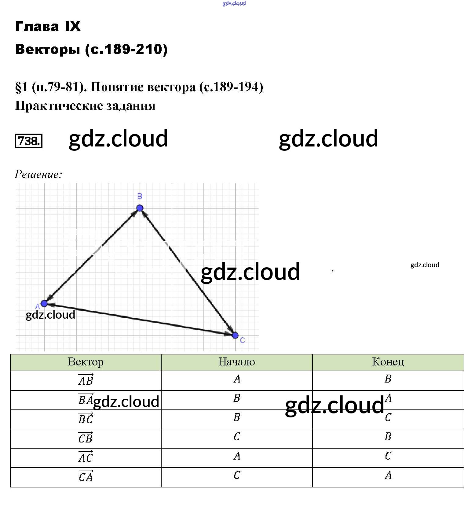 Ответ на задание 738 Учебник Геометрия за 7, 8, 9 (седьмой, восьмой, девятый) класс Атанасян, Бутузов, Кадомцев 2010
