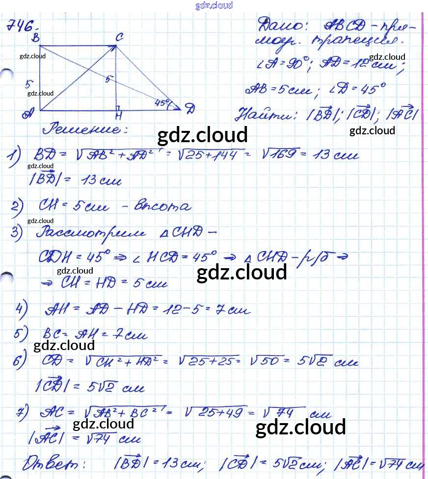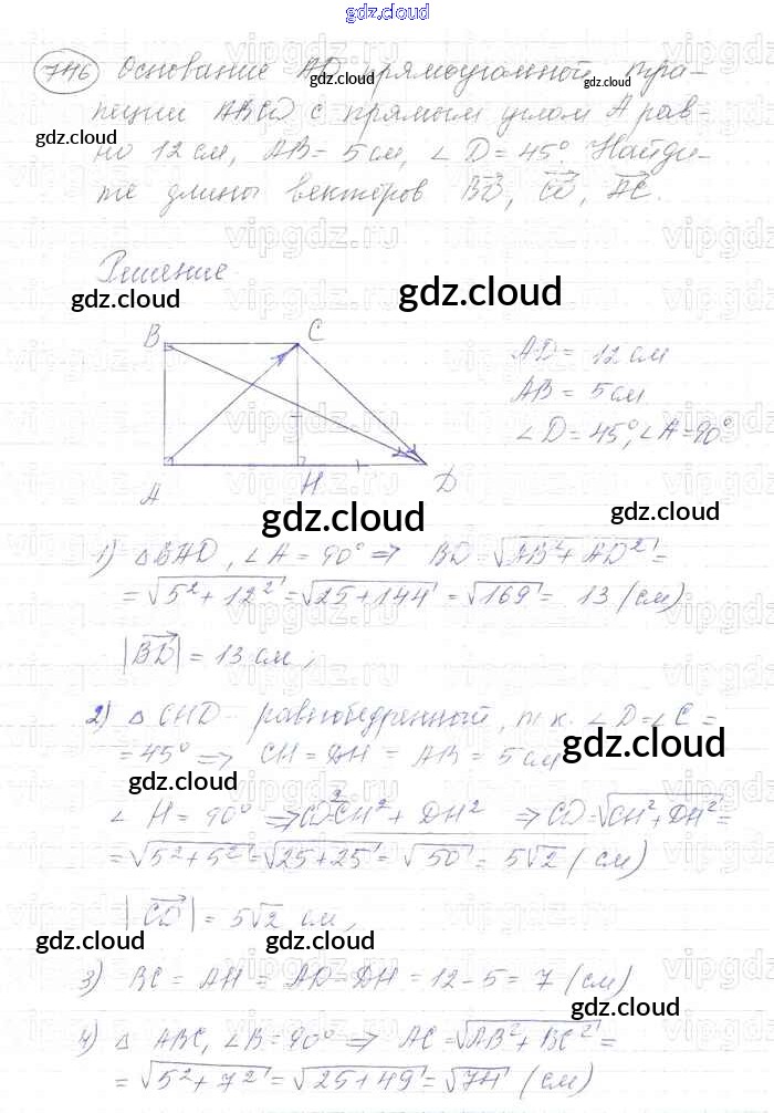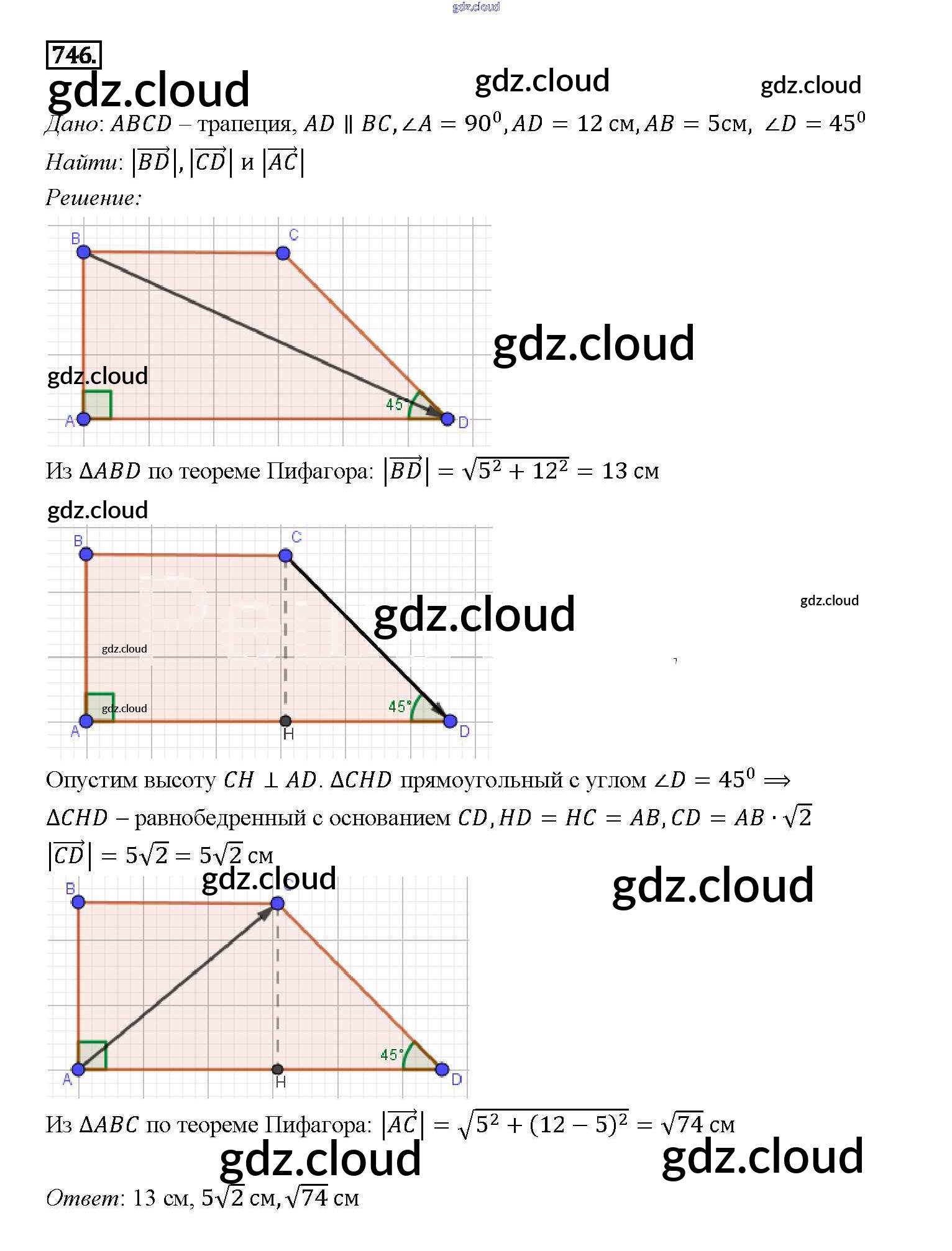 Ответ на задание 746 Учебник Геометрия за 7, 8, 9 (седьмой, восьмой, девятый) класс Атанасян, Бутузов, Кадомцев 2010