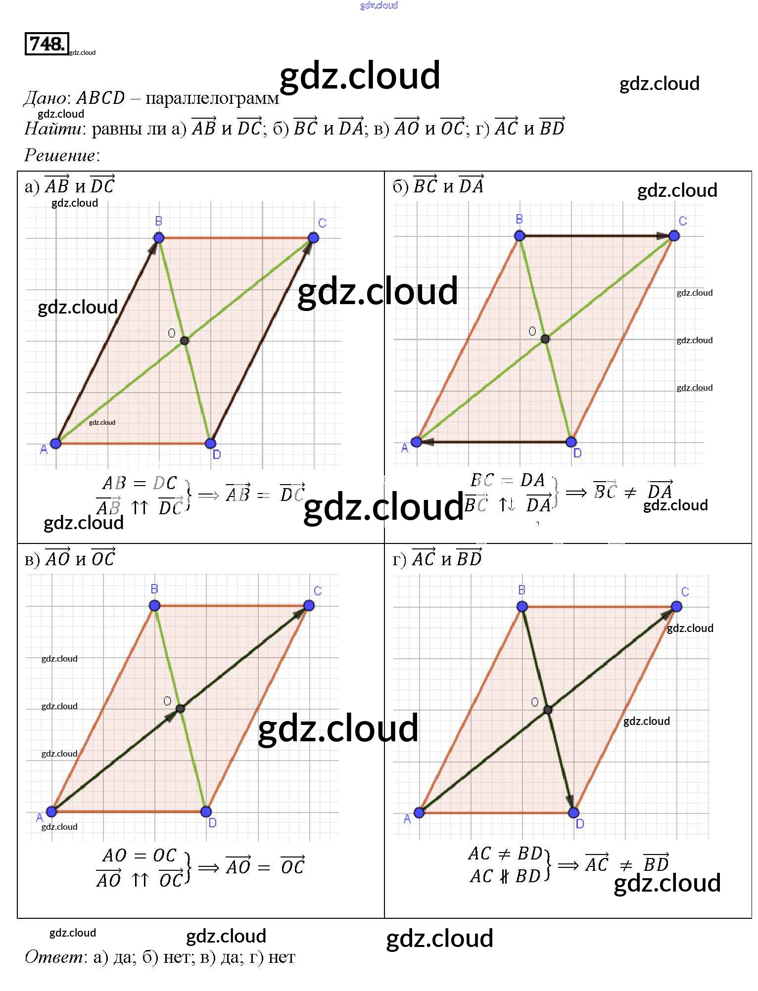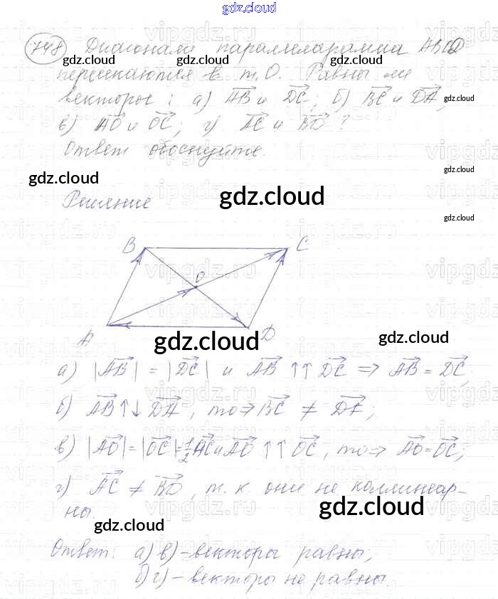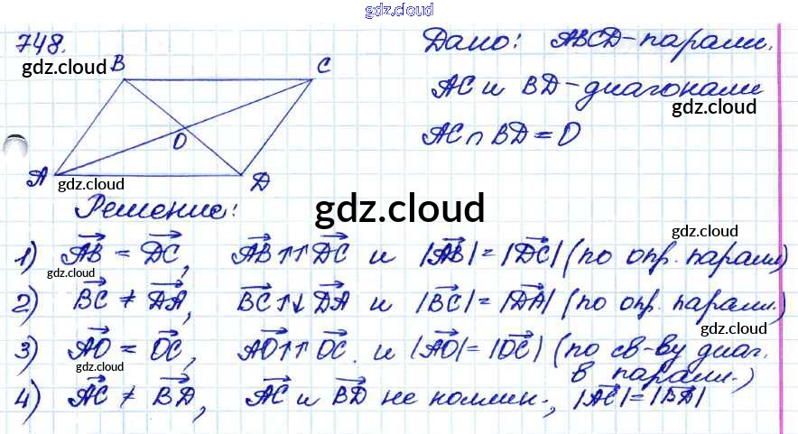 Ответ на задание 748 Учебник Геометрия за 7, 8, 9 (седьмой, восьмой, девятый) класс Атанасян, Бутузов, Кадомцев 2010