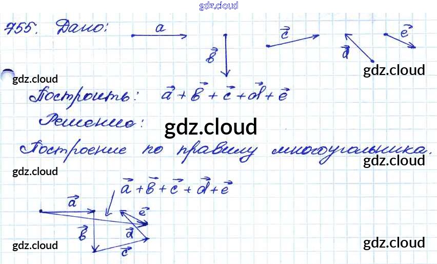 Ответ на задание 755 Учебник Геометрия за 7, 8, 9 (седьмой, восьмой, девятый) класс Атанасян, Бутузов, Кадомцев 2010