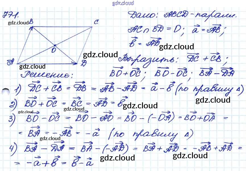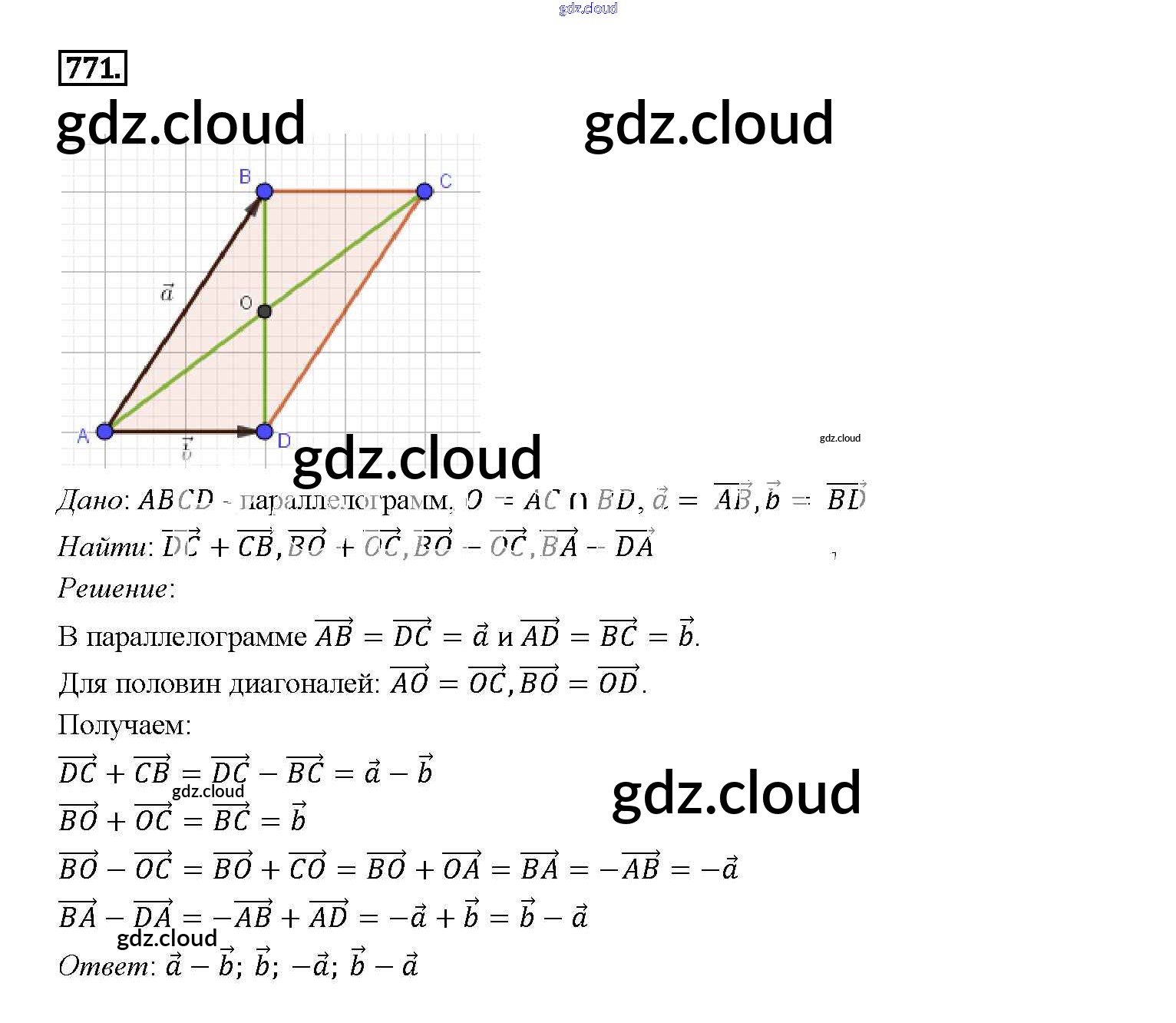 Ответ на задание 771 Учебник Геометрия за 7, 8, 9 (седьмой, восьмой, девятый) класс Атанасян, Бутузов, Кадомцев 2010