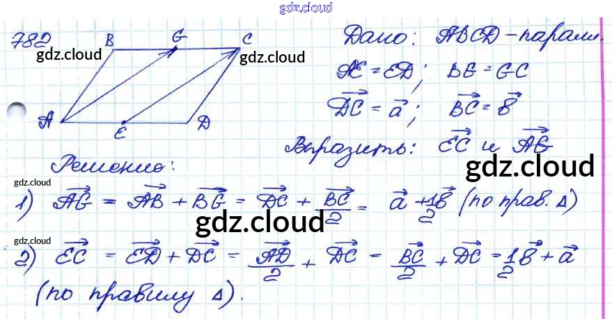 Ответ на задание 782 Учебник Геометрия за 7, 8, 9 (седьмой, восьмой, девятый) класс Атанасян, Бутузов, Кадомцев 2010