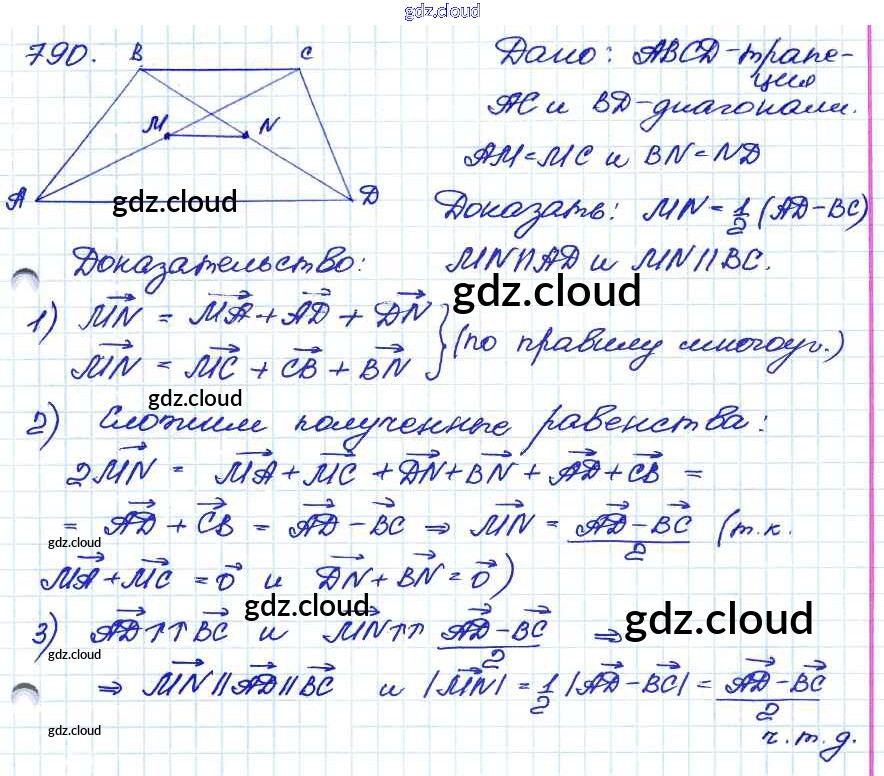Ответ на задание 790 Учебник Геометрия за 7, 8, 9 (седьмой, восьмой, девятый) класс Атанасян, Бутузов, Кадомцев 2010