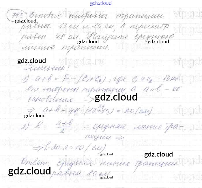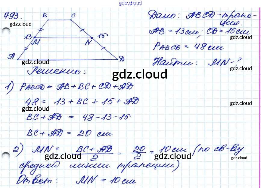 Ответ на задание 793 Учебник Геометрия за 7, 8, 9 (седьмой, восьмой, девятый) класс Атанасян, Бутузов, Кадомцев 2010