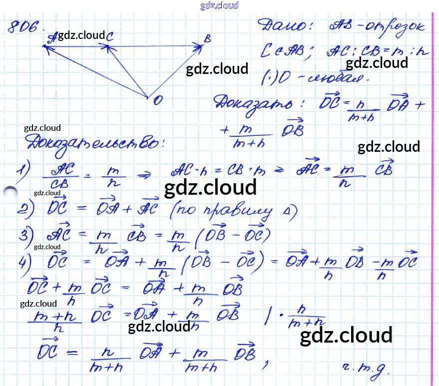 Ответ на задание 806 Учебник Геометрия за 7, 8, 9 (седьмой, восьмой, девятый) класс Атанасян, Бутузов, Кадомцев 2010