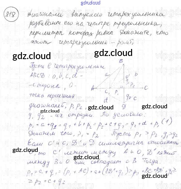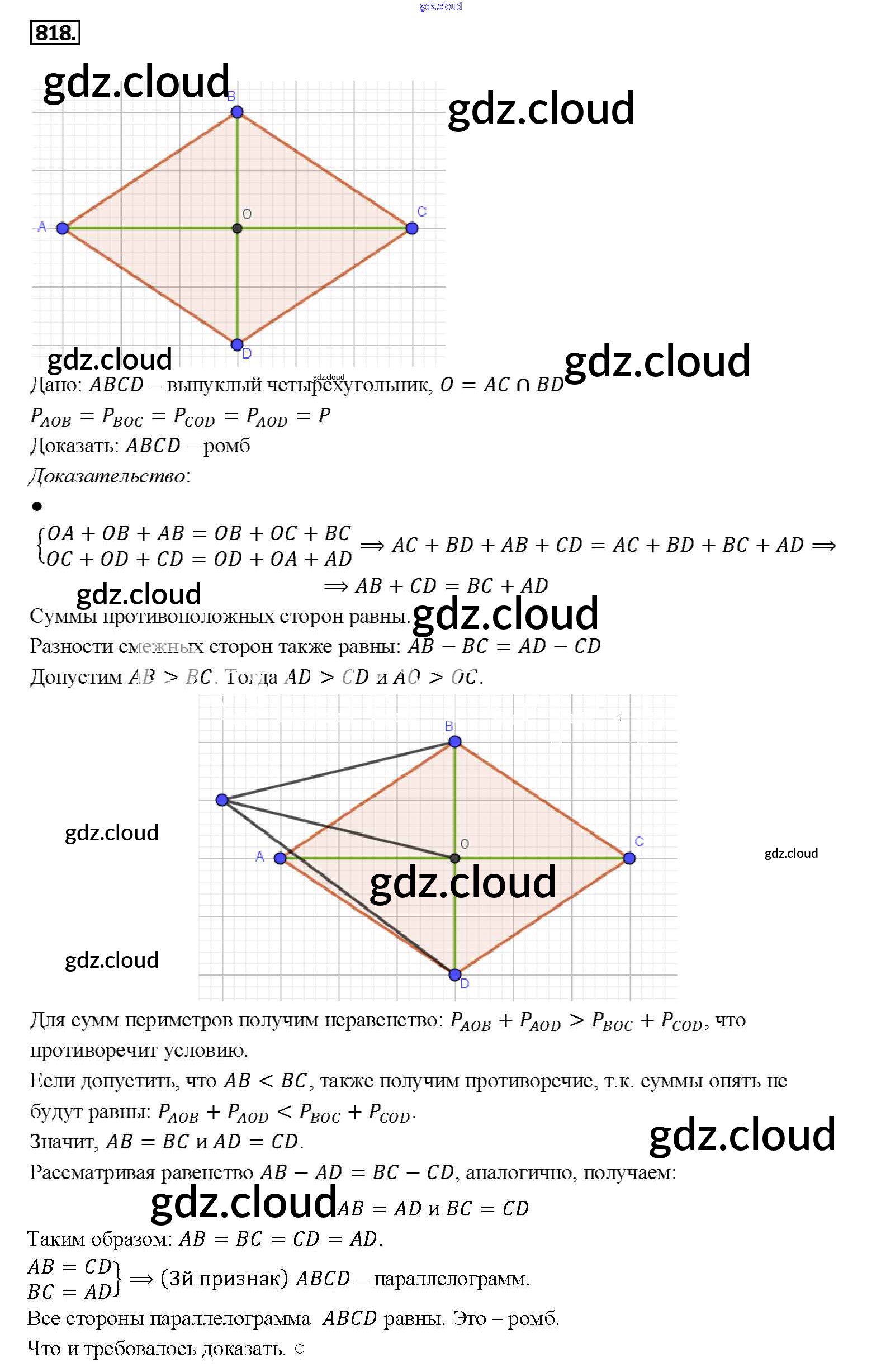 Ответ на задание 818 Учебник Геометрия за 7, 8, 9 (седьмой, восьмой, девятый) класс Атанасян, Бутузов, Кадомцев 2010
