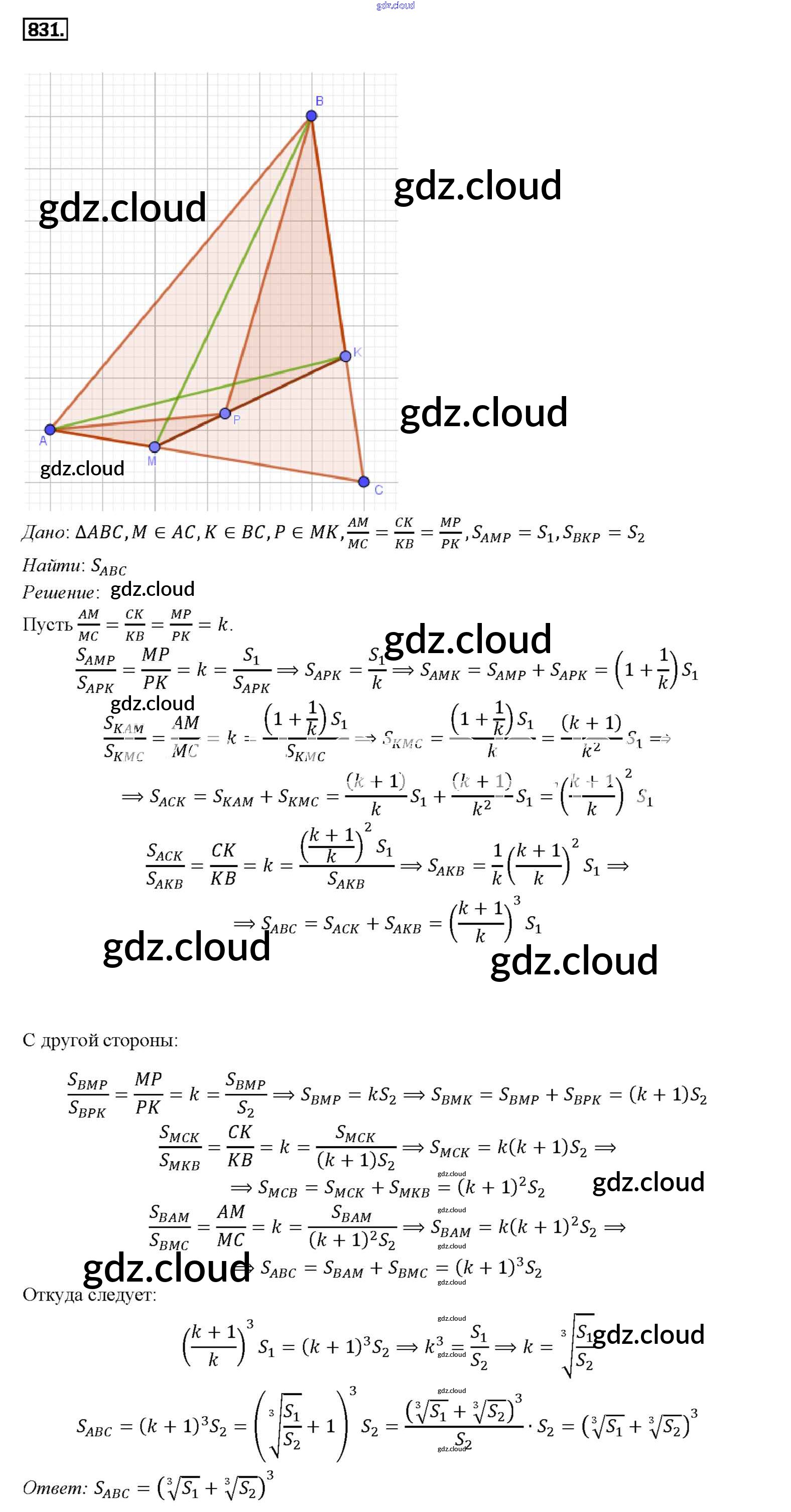 Ответ на задание 831 Учебник Геометрия за 7, 8, 9 (седьмой, восьмой, девятый) класс Атанасян, Бутузов, Кадомцев 2010