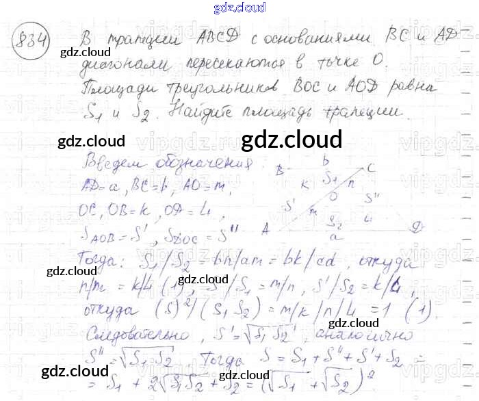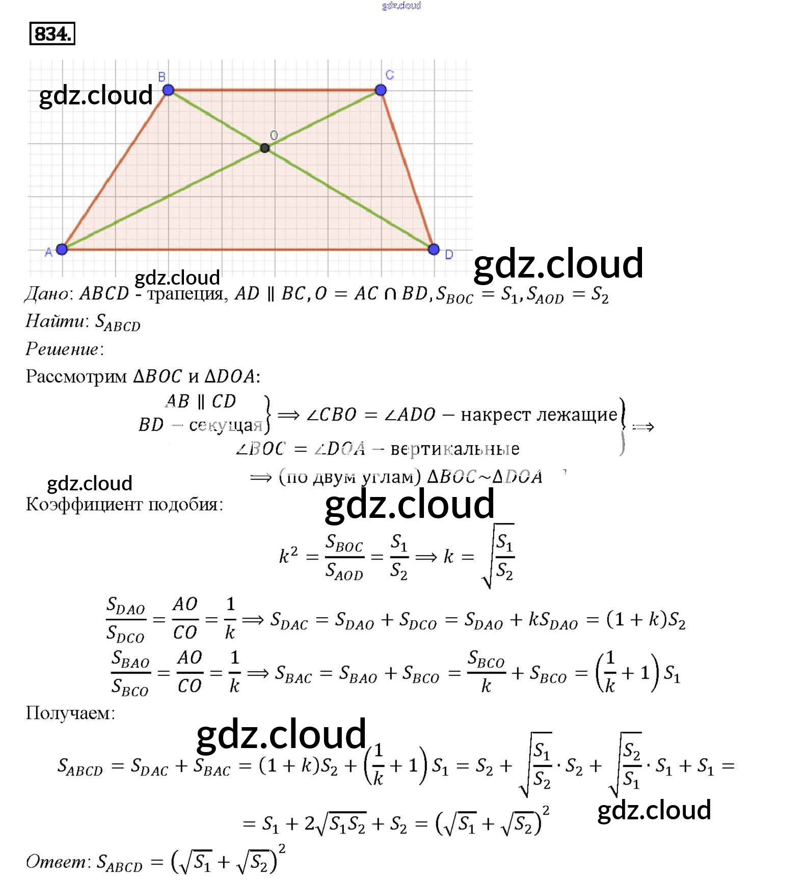 Ответ на задание 834 Учебник Геометрия за 7, 8, 9 (седьмой, восьмой, девятый) класс Атанасян, Бутузов, Кадомцев 2010