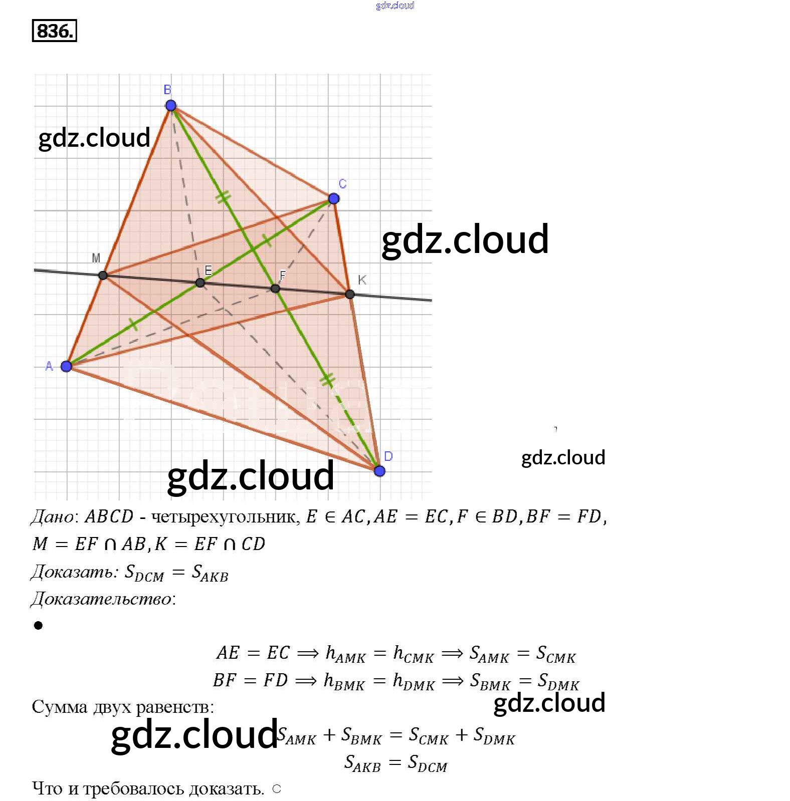 Ответ на задание 836 Учебник Геометрия за 7, 8, 9 (седьмой, восьмой, девятый) класс Атанасян, Бутузов, Кадомцев 2010