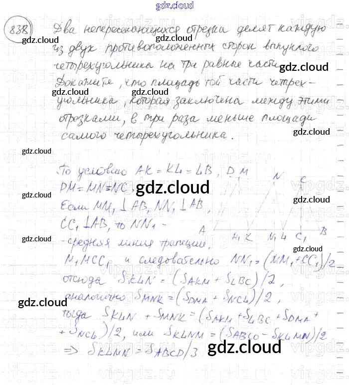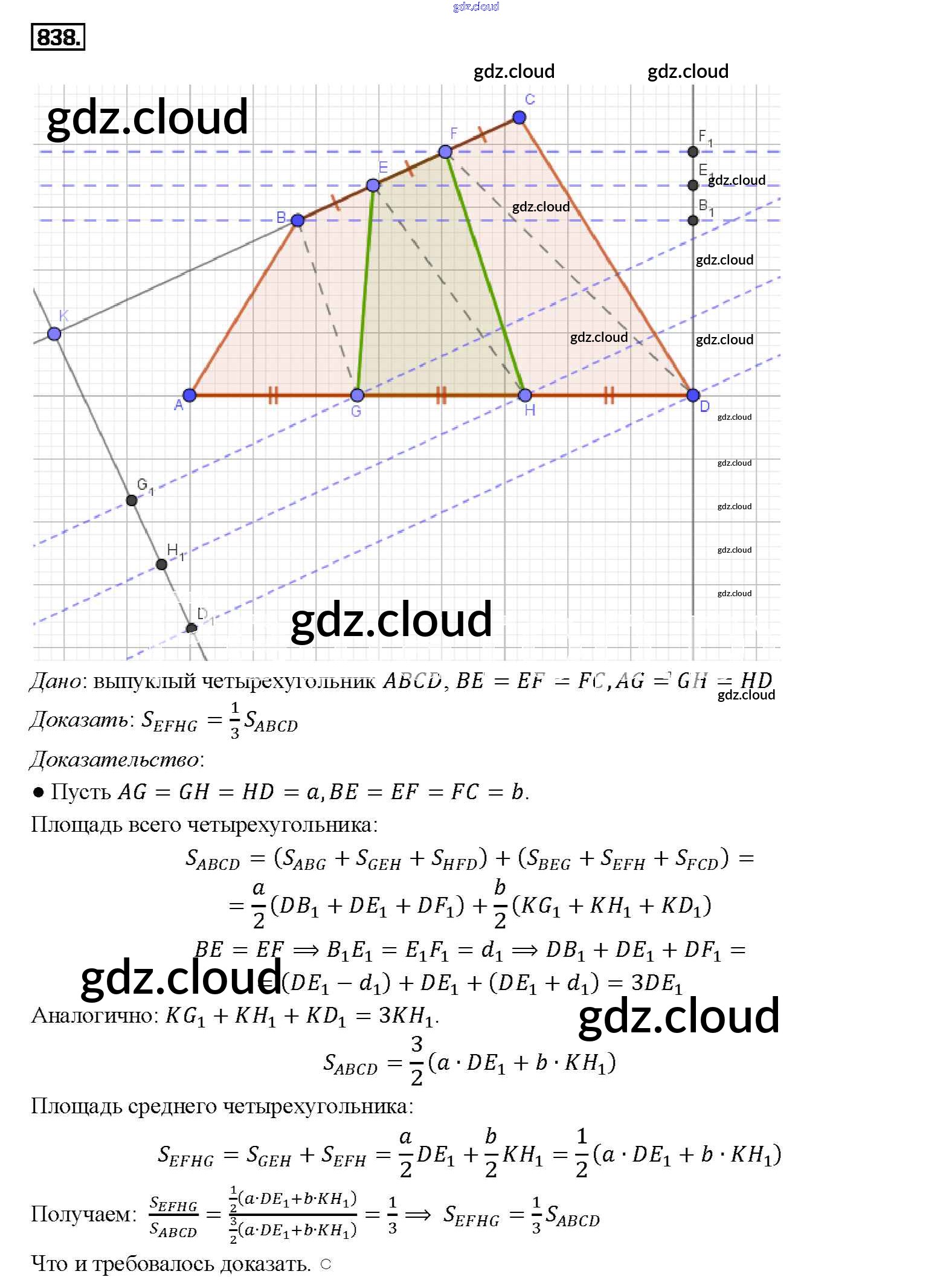Ответ на задание 838 Учебник Геометрия за 7, 8, 9 (седьмой, восьмой, девятый) класс Атанасян, Бутузов, Кадомцев 2010
