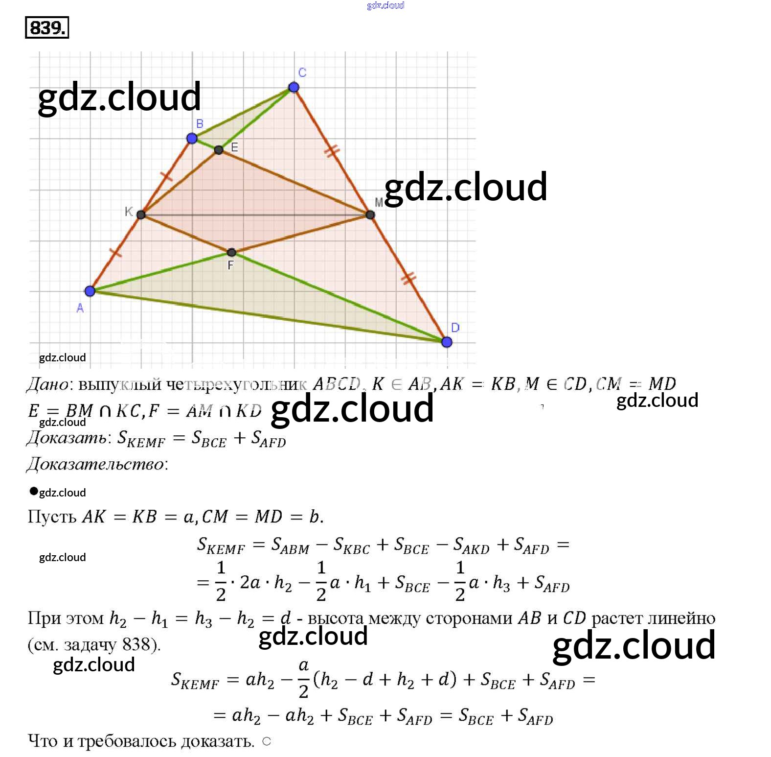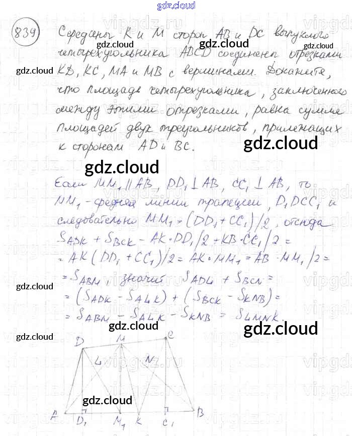 Ответ на задание 839 Учебник Геометрия за 7, 8, 9 (седьмой, восьмой, девятый) класс Атанасян, Бутузов, Кадомцев 2010
