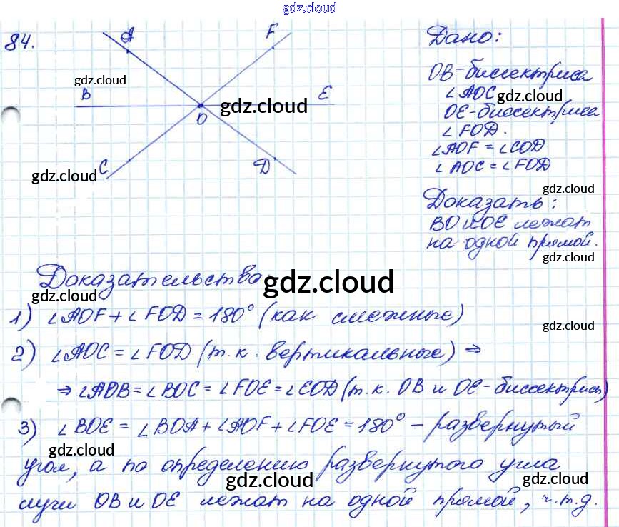 Ответ на задание 84 Учебник Геометрия за 7, 8, 9 (седьмой, восьмой, девятый) класс Атанасян, Бутузов, Кадомцев 2010