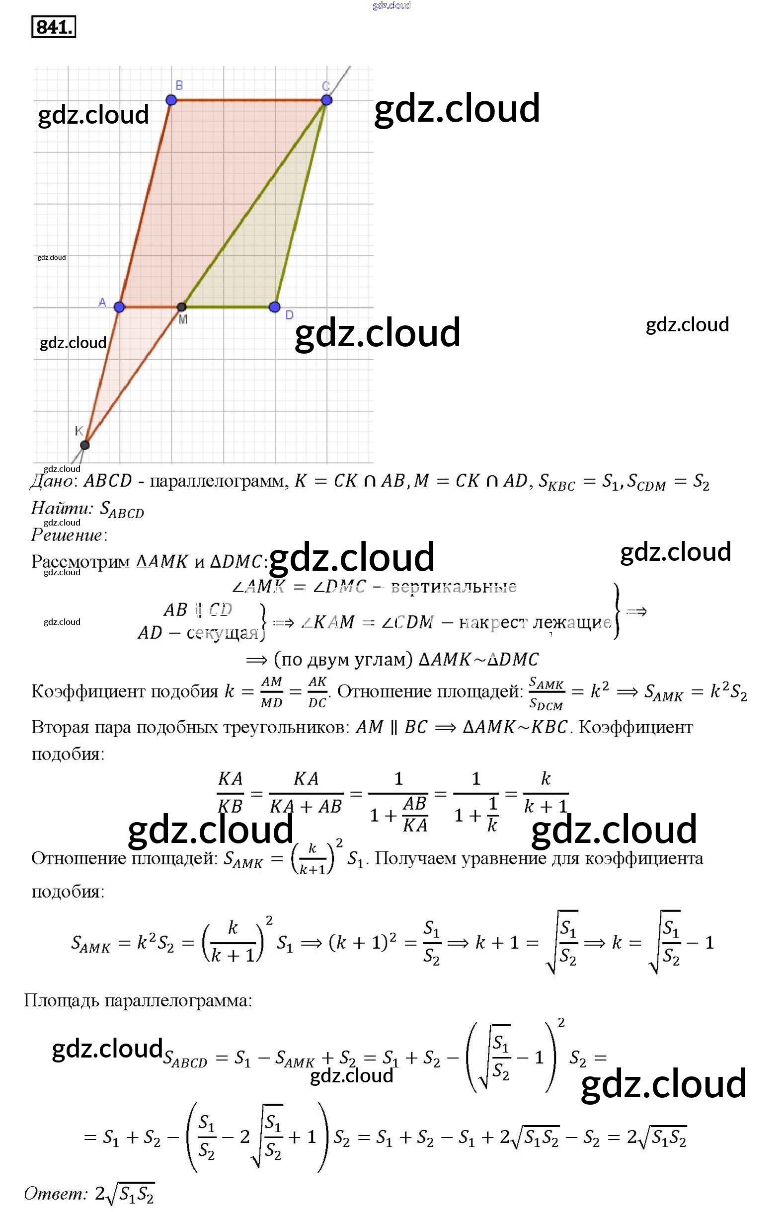 Ответ на задание 841 Учебник Геометрия за 7, 8, 9 (седьмой, восьмой, девятый) класс Атанасян, Бутузов, Кадомцев 2010