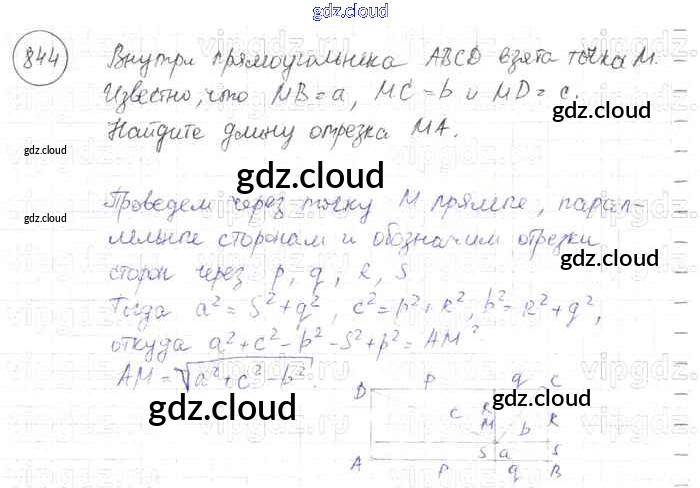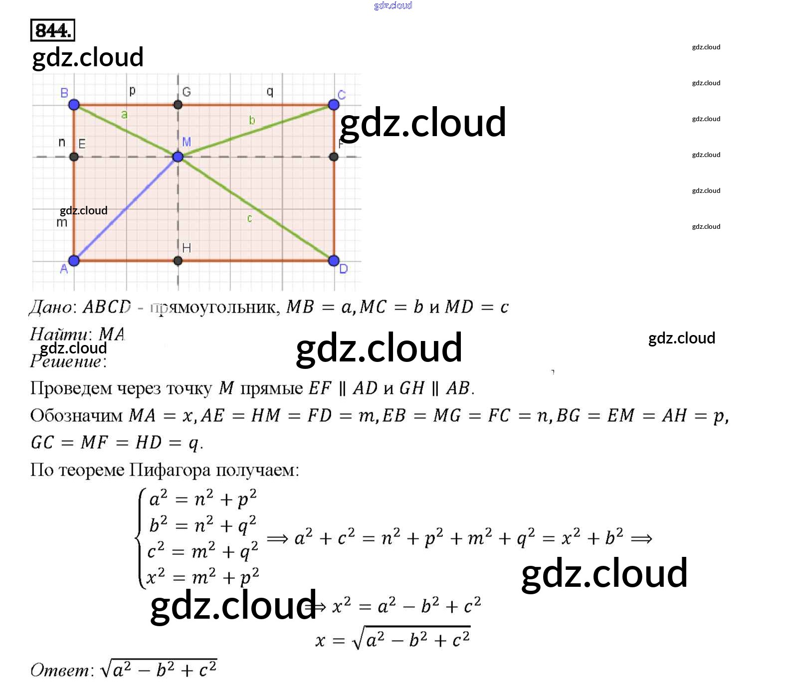 Ответ на задание 844 Учебник Геометрия за 7, 8, 9 (седьмой, восьмой, девятый) класс Атанасян, Бутузов, Кадомцев 2010