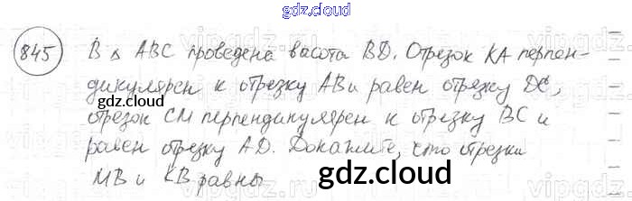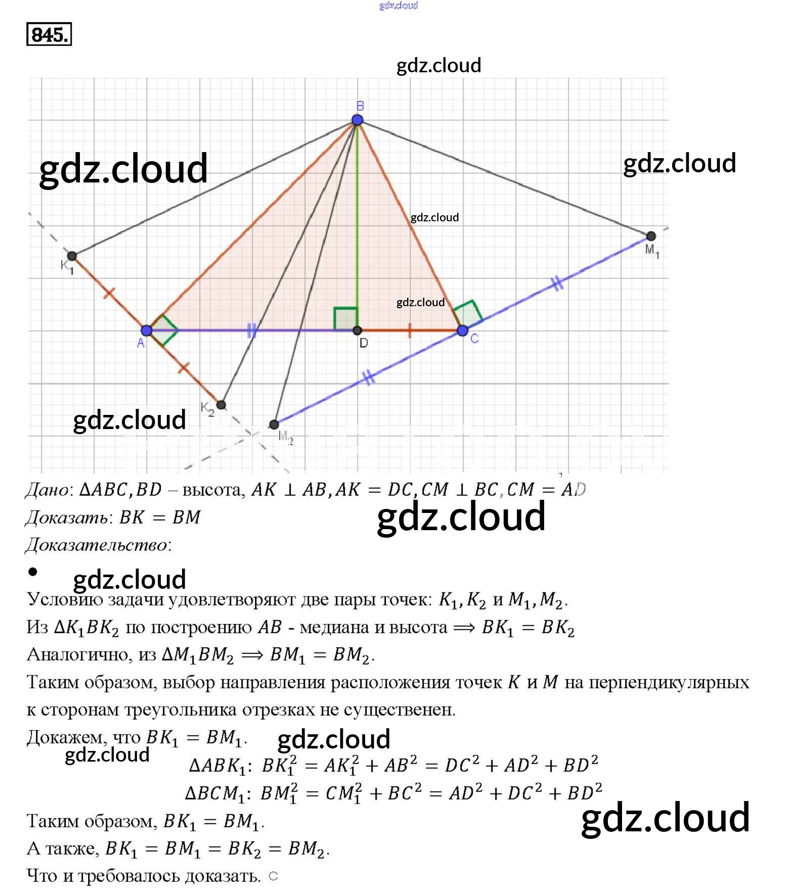 Ответ на задание 845 Учебник Геометрия за 7, 8, 9 (седьмой, восьмой, девятый) класс Атанасян, Бутузов, Кадомцев 2010