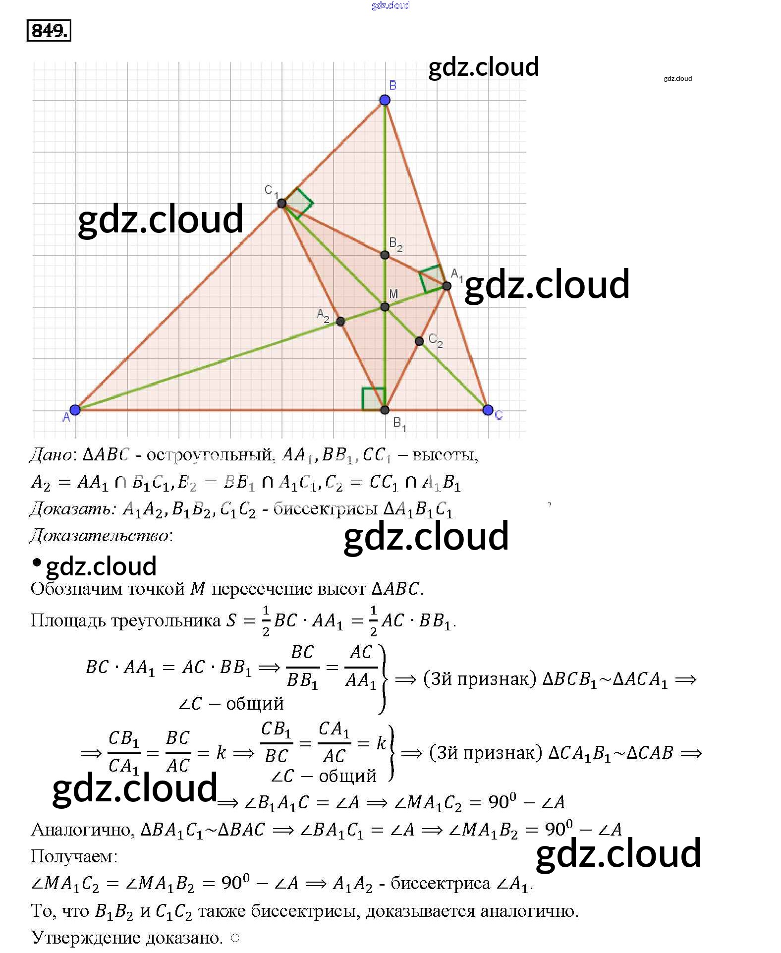 Ответ на задание 849 Учебник Геометрия за 7, 8, 9 (седьмой, восьмой, девятый) класс Атанасян, Бутузов, Кадомцев 2010
