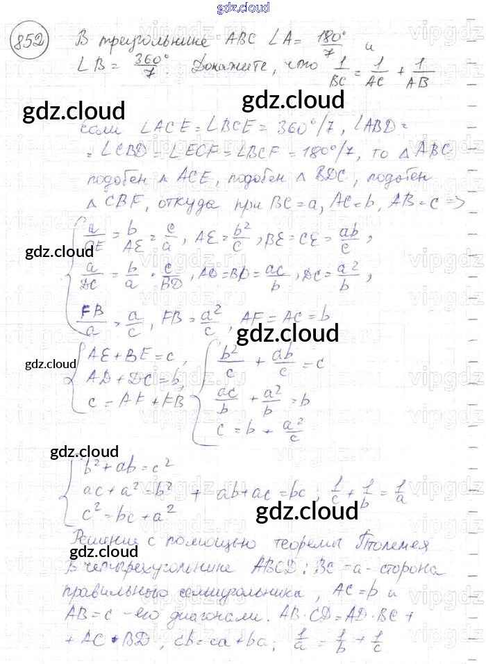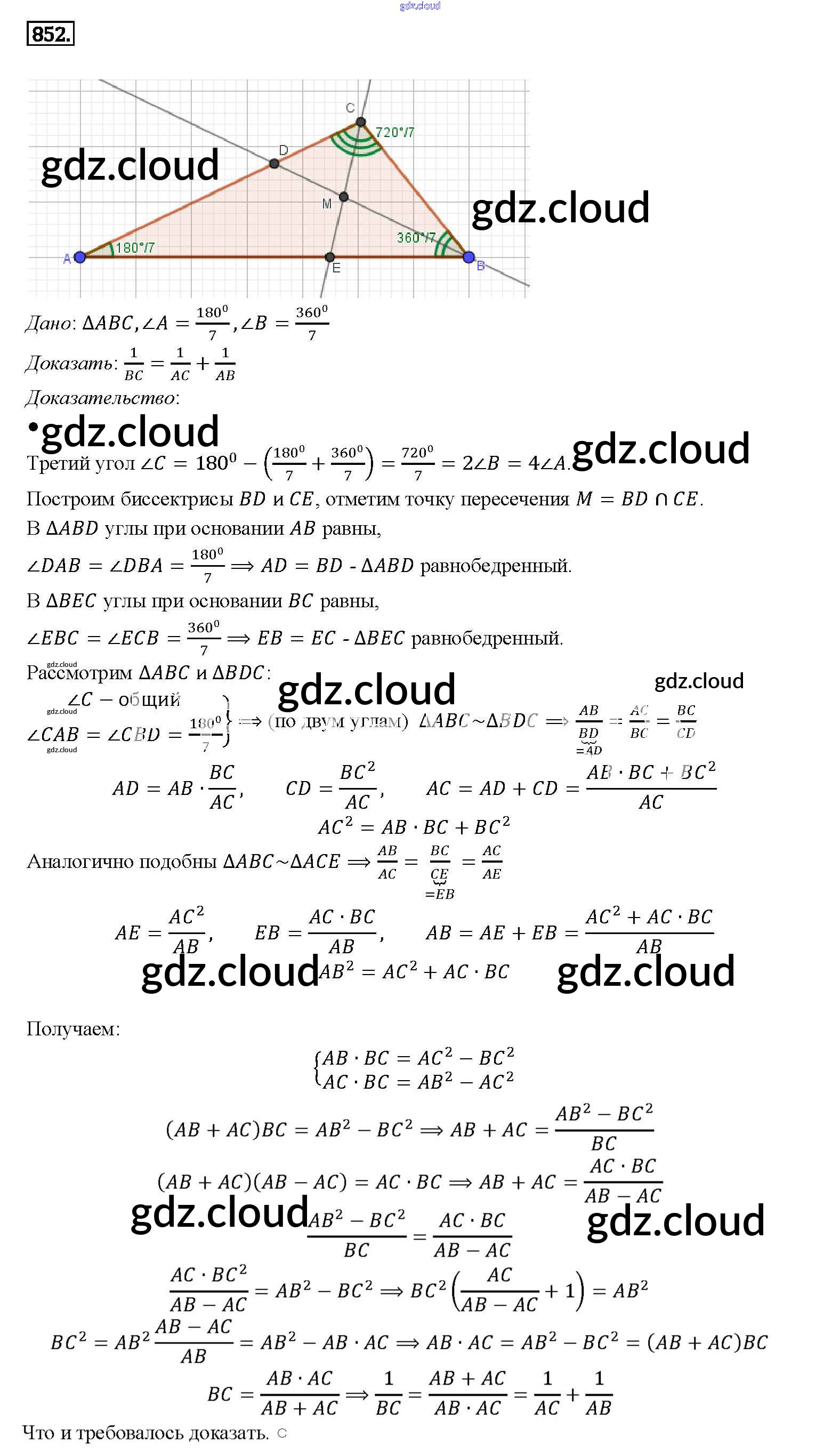Ответ на задание 852 Учебник Геометрия за 7, 8, 9 (седьмой, восьмой, девятый) класс Атанасян, Бутузов, Кадомцев 2010