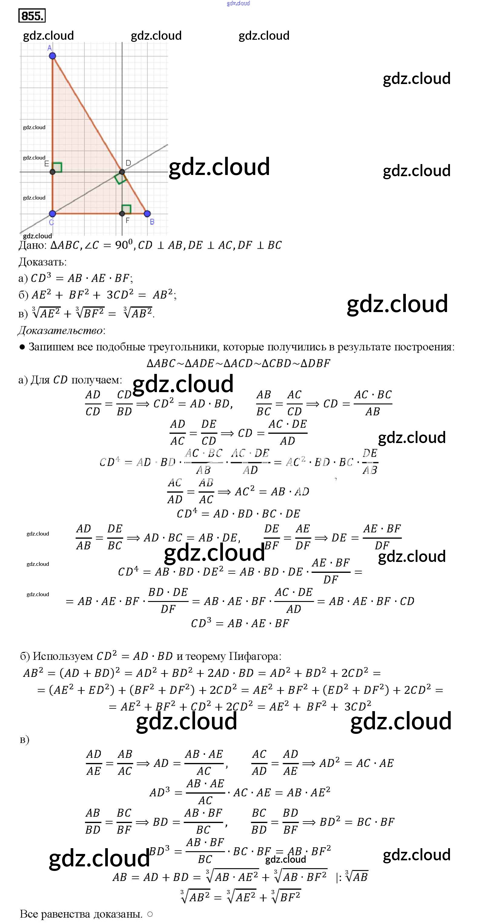 Ответ на задание 855 Учебник Геометрия за 7, 8, 9 (седьмой, восьмой, девятый) класс Атанасян, Бутузов, Кадомцев 2010