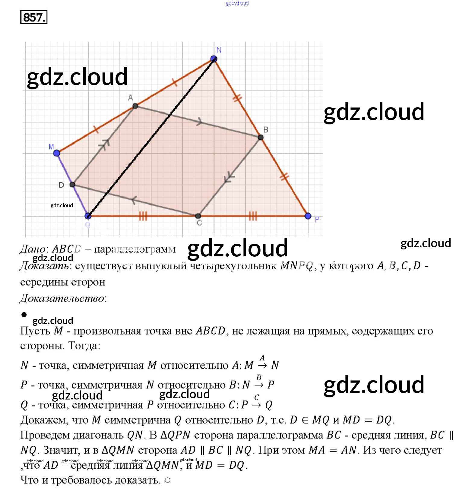 Ответ на задание 857 Учебник Геометрия за 7, 8, 9 (седьмой, восьмой, девятый) класс Атанасян, Бутузов, Кадомцев 2010