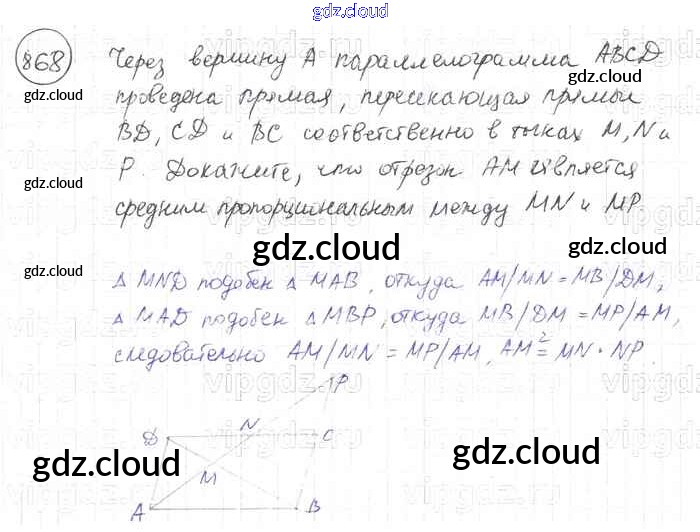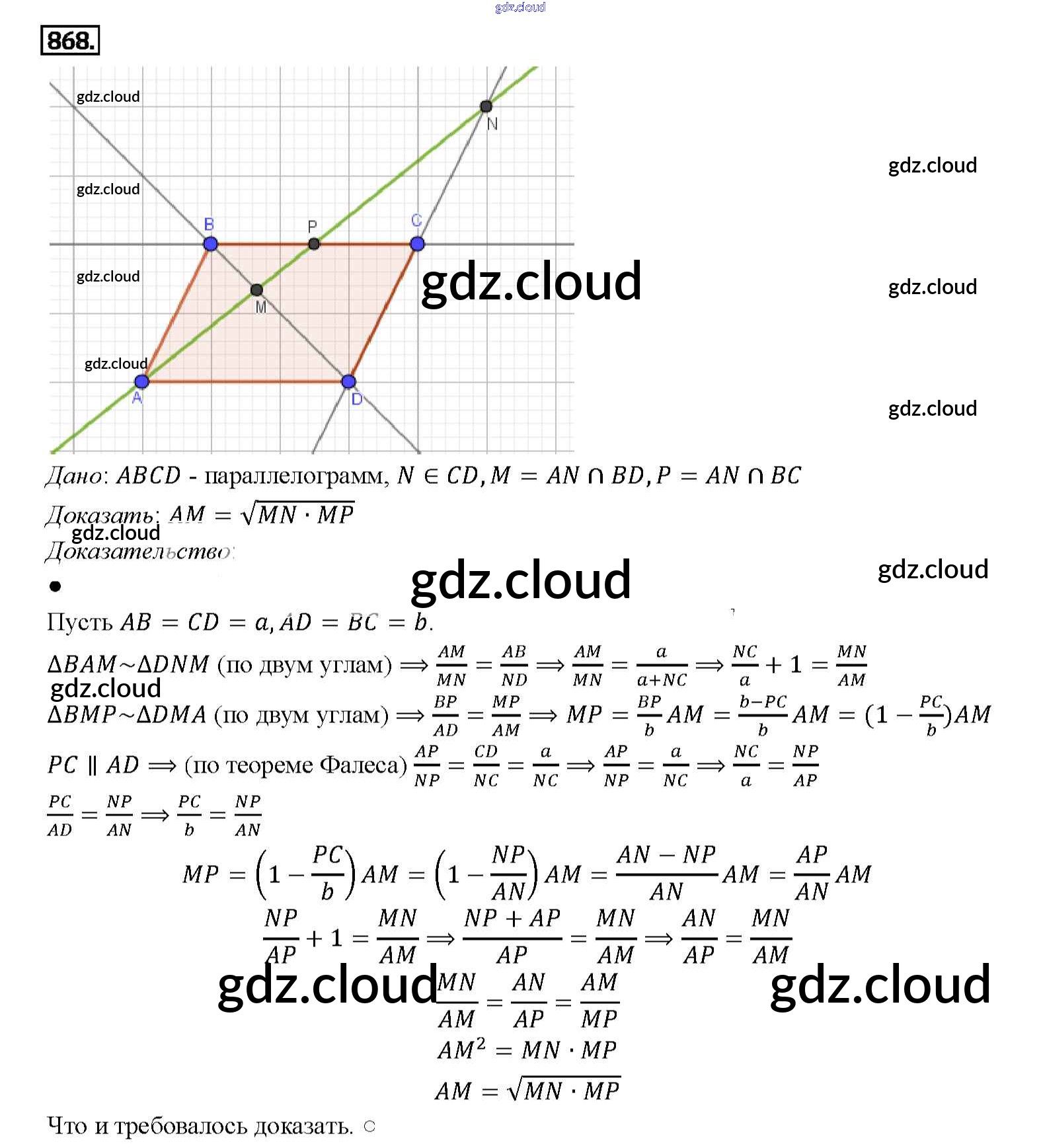 Ответ на задание 868 Учебник Геометрия за 7, 8, 9 (седьмой, восьмой, девятый) класс Атанасян, Бутузов, Кадомцев 2010