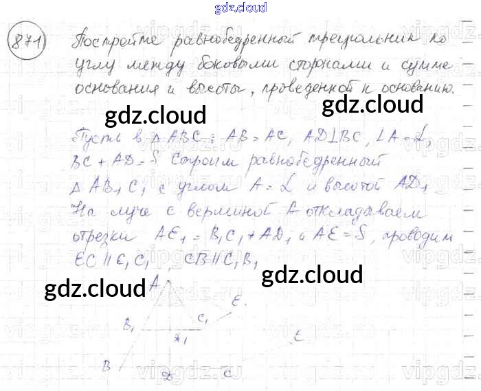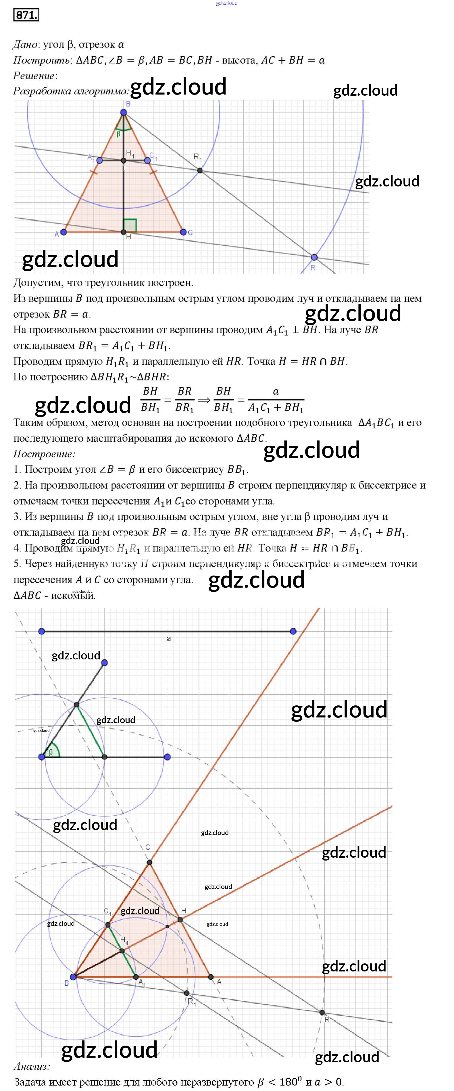 Ответ на задание 871 Учебник Геометрия за 7, 8, 9 (седьмой, восьмой, девятый) класс Атанасян, Бутузов, Кадомцев 2010