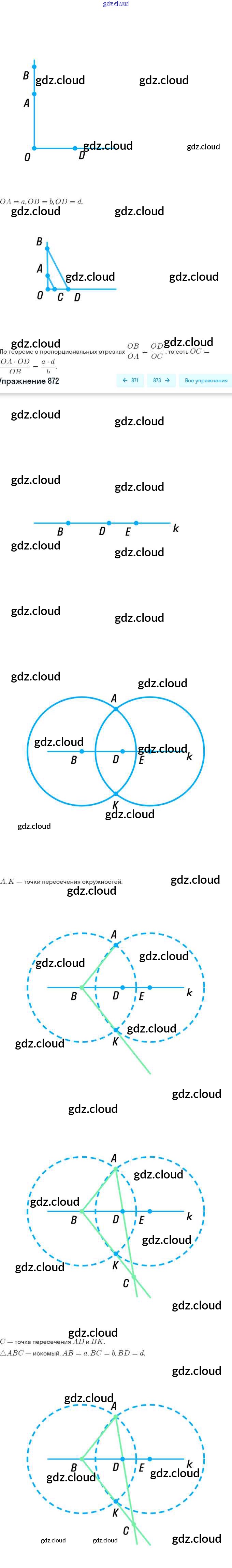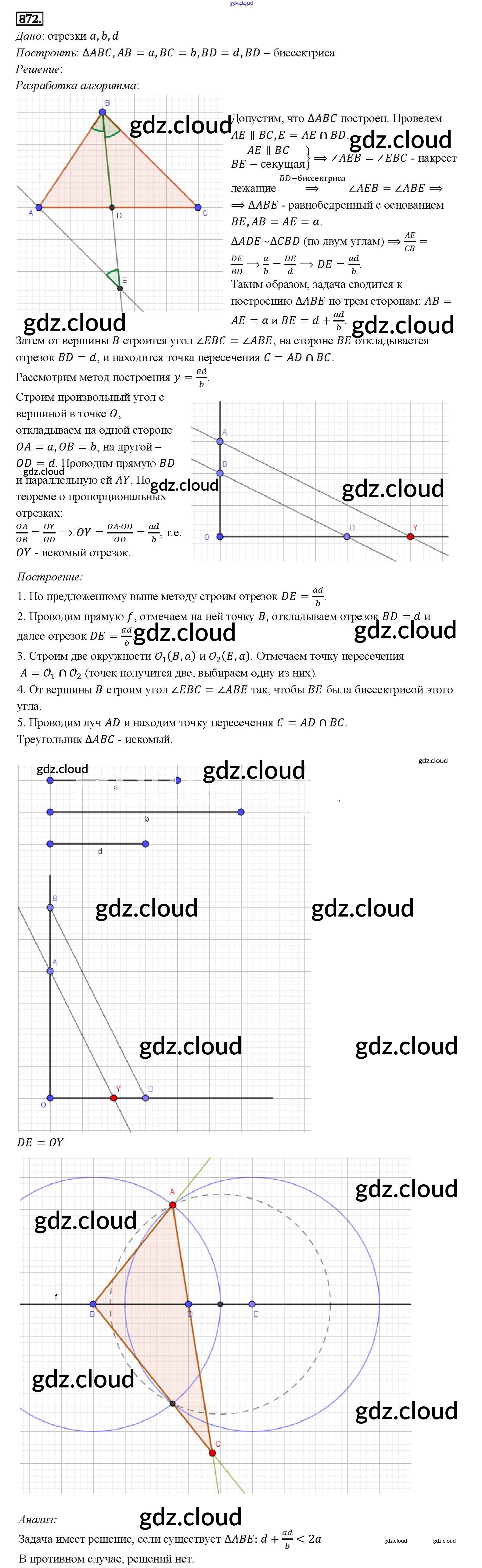 Ответ на задание 872 Учебник Геометрия за 7, 8, 9 (седьмой, восьмой, девятый) класс Атанасян, Бутузов, Кадомцев 2010
