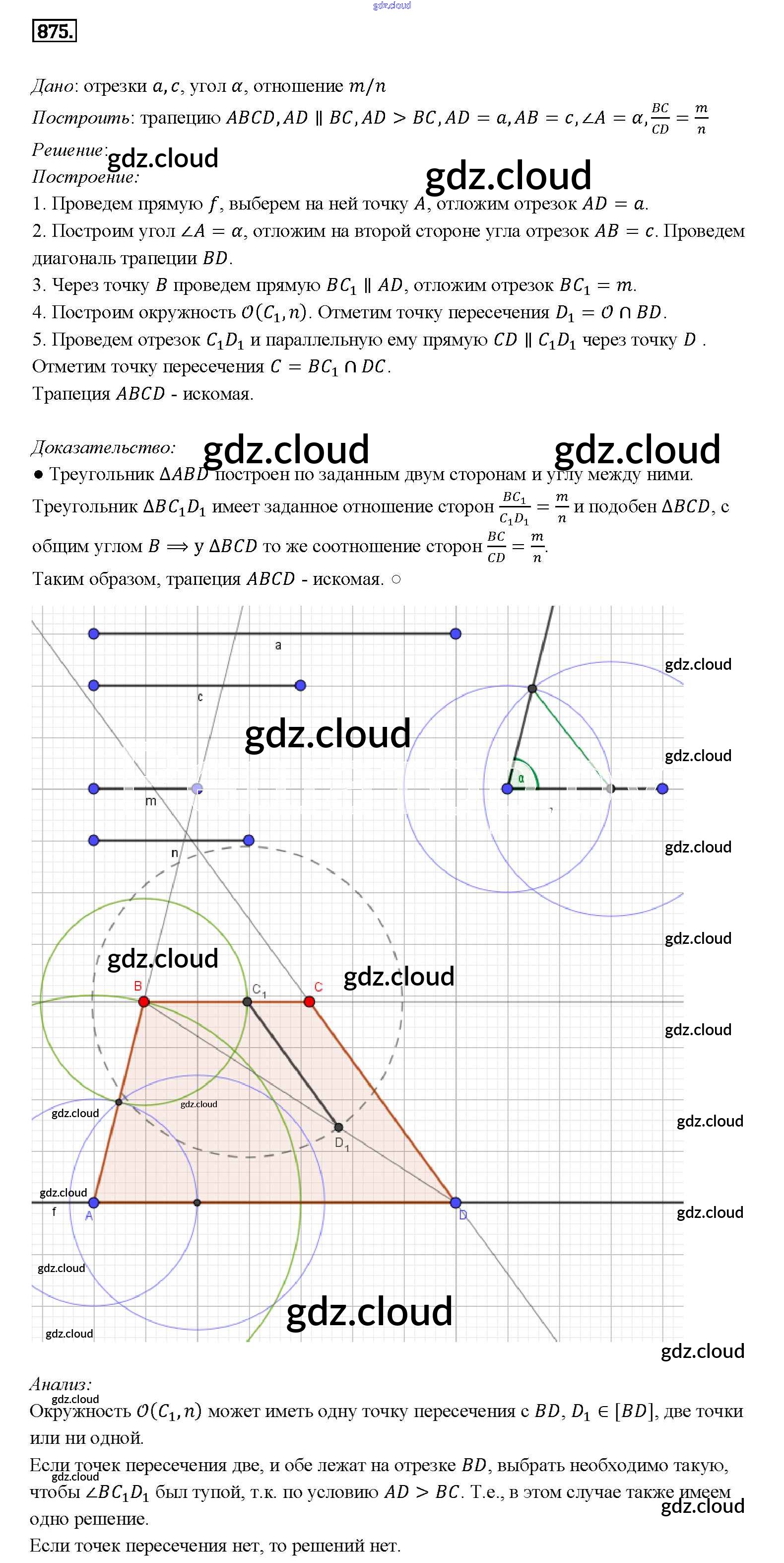 Ответ на задание 875 Учебник Геометрия за 7, 8, 9 (седьмой, восьмой, девятый) класс Атанасян, Бутузов, Кадомцев 2010