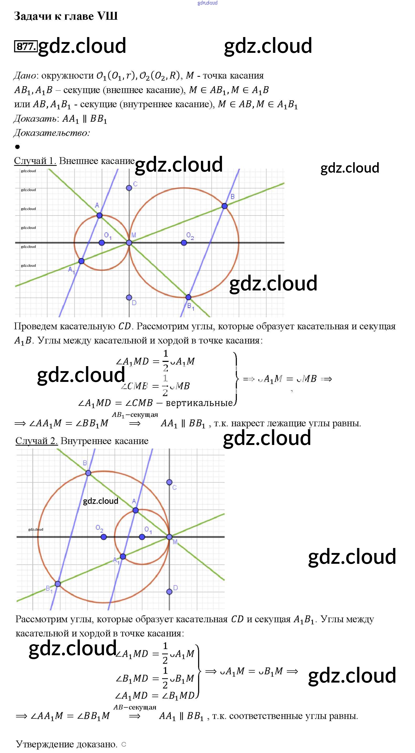 Ответ на задание 877 Учебник Геометрия за 7, 8, 9 (седьмой, восьмой, девятый) класс Атанасян, Бутузов, Кадомцев 2010