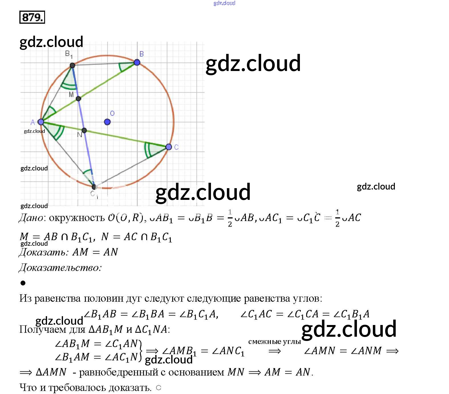 Ответ на задание 879 Учебник Геометрия за 7, 8, 9 (седьмой, восьмой, девятый) класс Атанасян, Бутузов, Кадомцев 2010