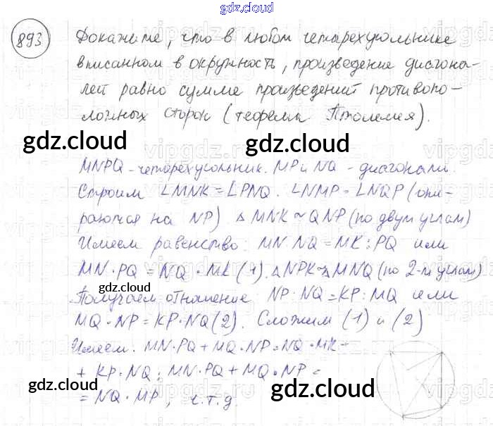 Ответ на задание 893 Учебник Геометрия за 7, 8, 9 (седьмой, восьмой, девятый) класс Атанасян, Бутузов, Кадомцев 2010