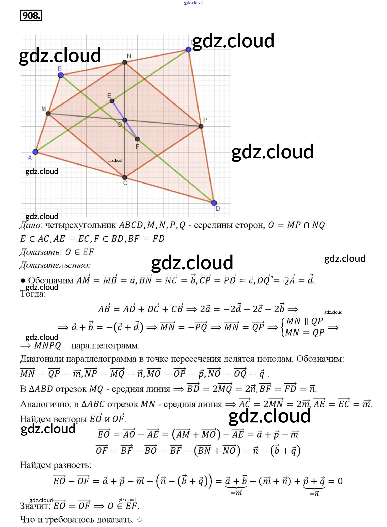 Ответ на задание 908 Учебник Геометрия за 7, 8, 9 (седьмой, восьмой, девятый) класс Атанасян, Бутузов, Кадомцев 2010