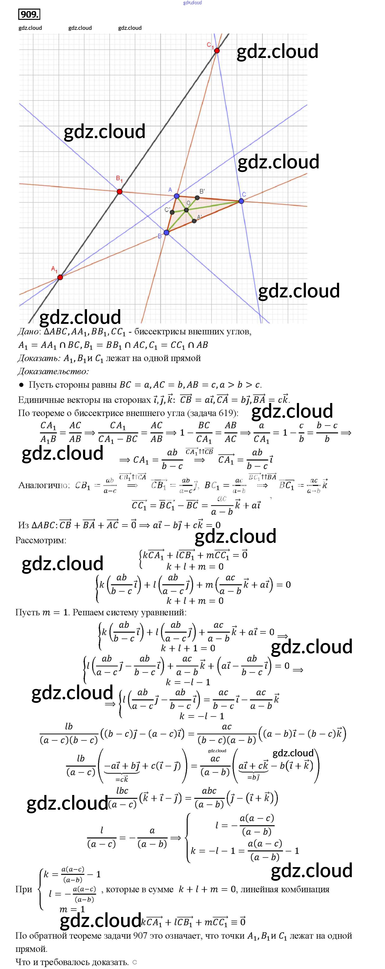 Ответ на задание 909 Учебник Геометрия за 7, 8, 9 (седьмой, восьмой, девятый) класс Атанасян, Бутузов, Кадомцев 2010