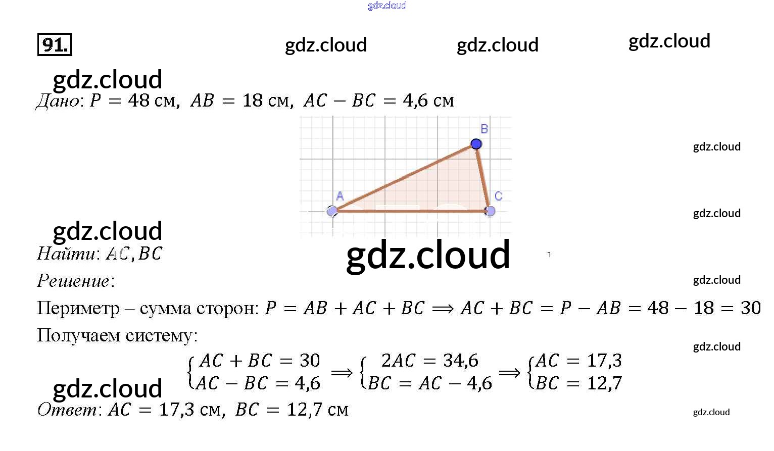 Ответ на задание 91 Учебник Геометрия за 7, 8, 9 (седьмой, восьмой, девятый) класс Атанасян, Бутузов, Кадомцев 2010