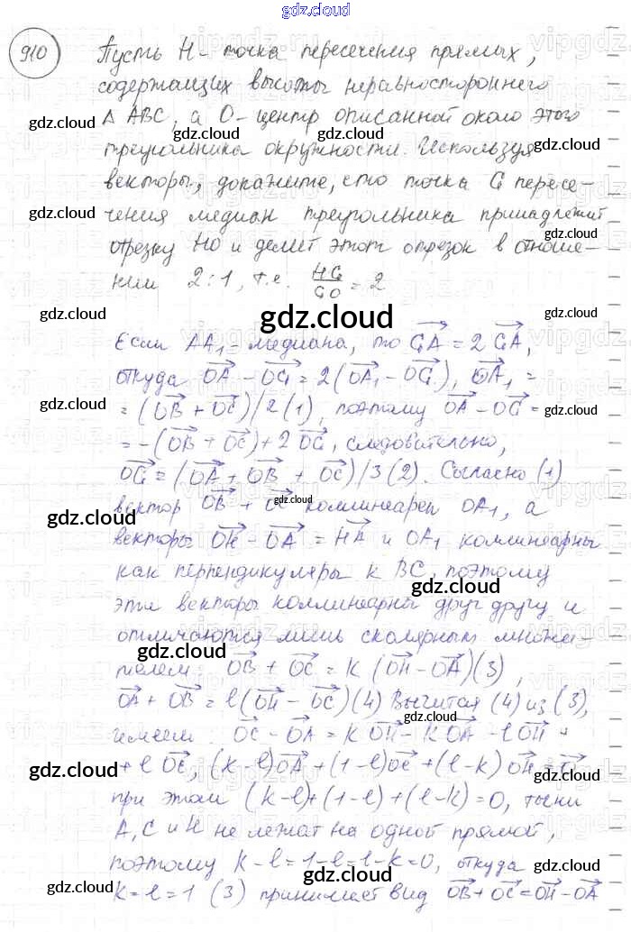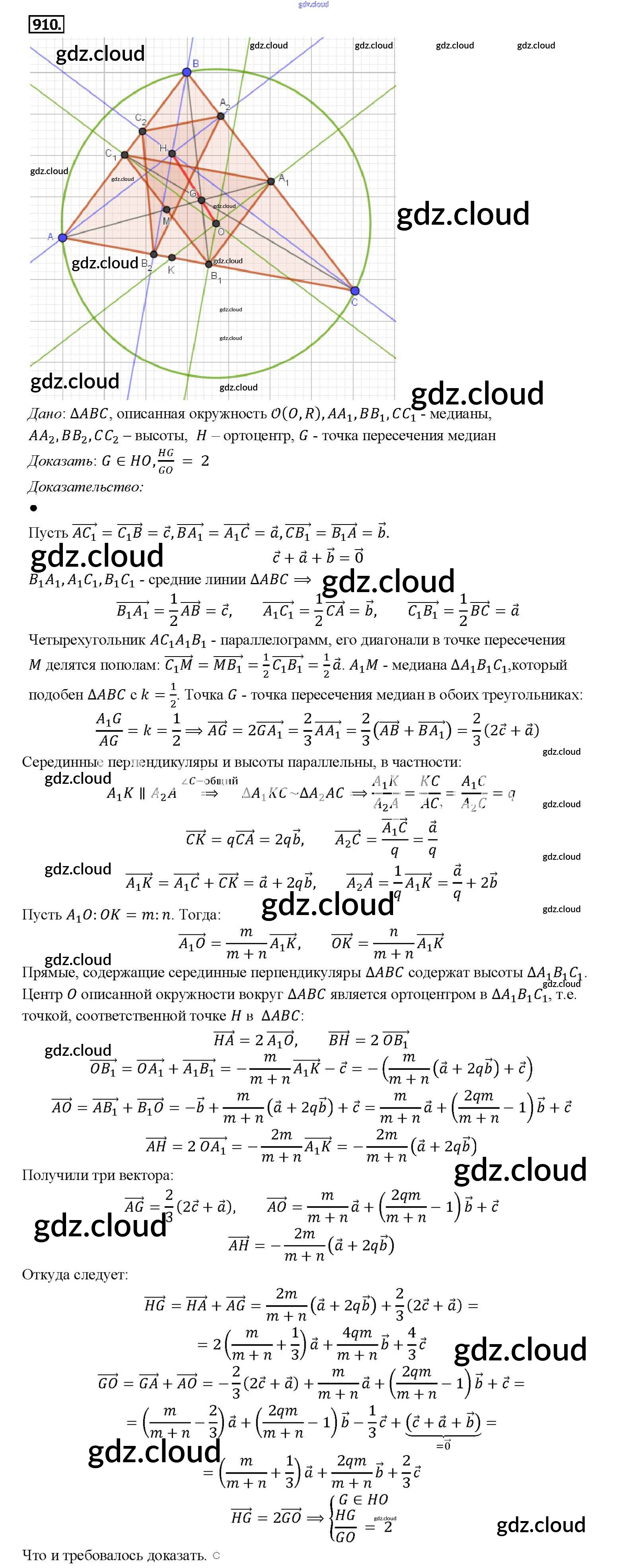 Ответ на задание 910 Учебник Геометрия за 7, 8, 9 (седьмой, восьмой, девятый) класс Атанасян, Бутузов, Кадомцев 2010