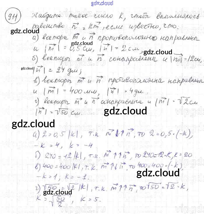 Ответ на задание 911 Учебник Геометрия за 7, 8, 9 (седьмой, восьмой, девятый) класс Атанасян, Бутузов, Кадомцев 2010