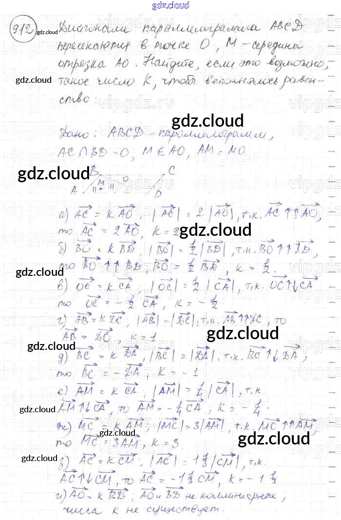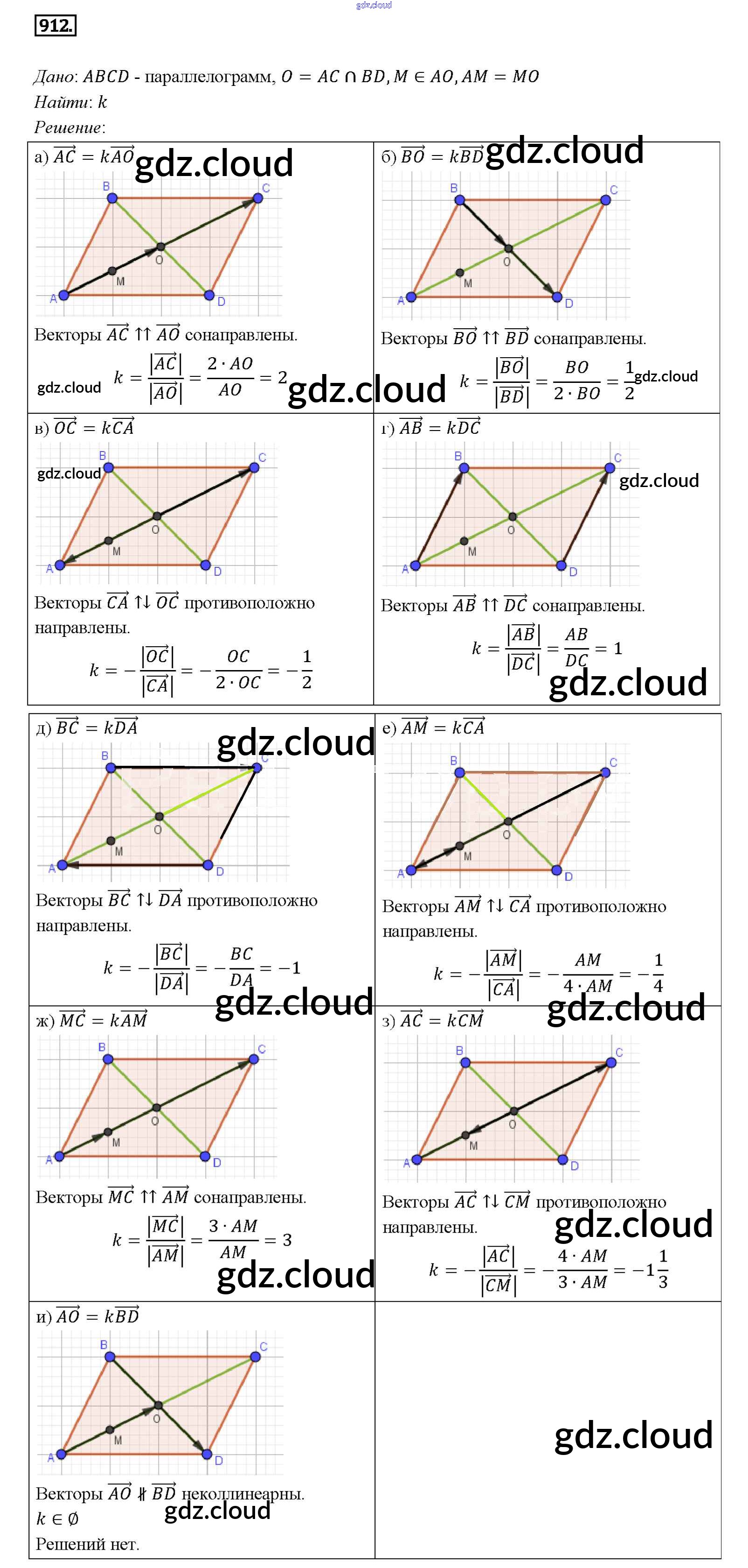 Ответ на задание 912 Учебник Геометрия за 7, 8, 9 (седьмой, восьмой, девятый) класс Атанасян, Бутузов, Кадомцев 2010