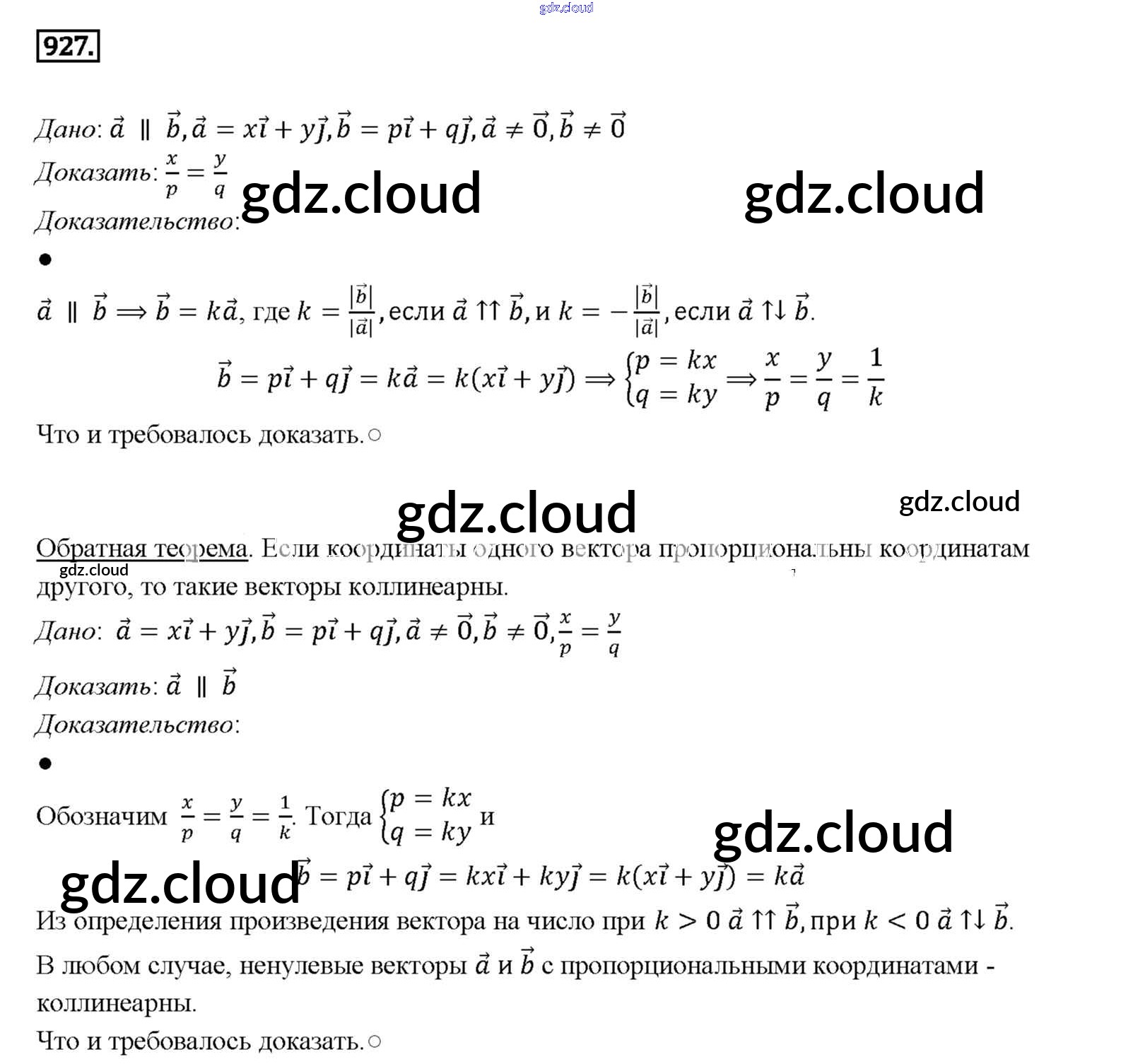 Ответ на задание 927 Учебник Геометрия за 7, 8, 9 (седьмой, восьмой, девятый) класс Атанасян, Бутузов, Кадомцев 2010