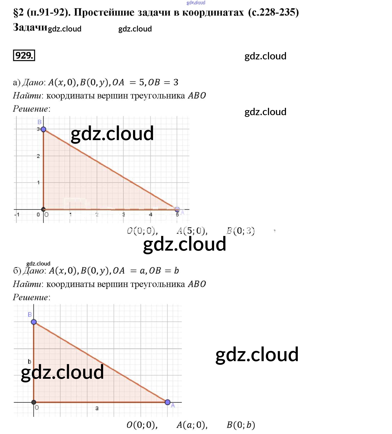 Ответ на задание 929 Учебник Геометрия за 7, 8, 9 (седьмой, восьмой, девятый) класс Атанасян, Бутузов, Кадомцев 2010