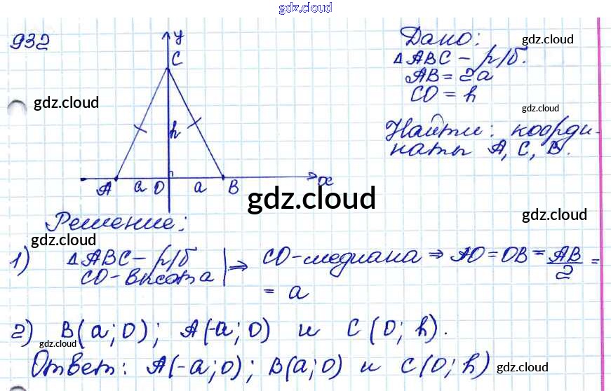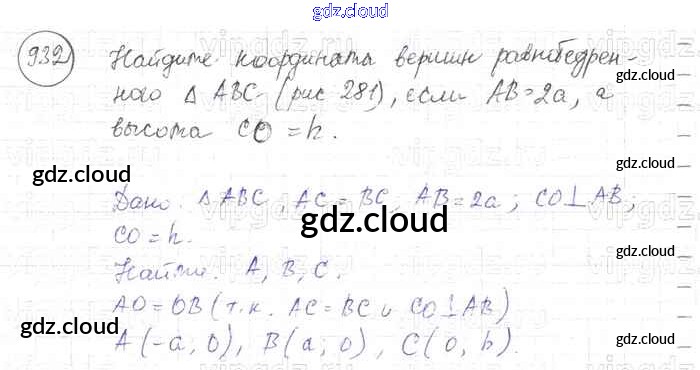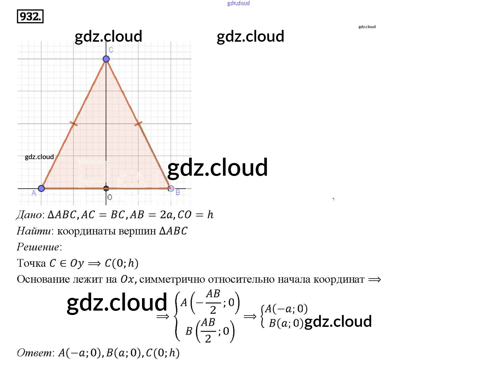 Ответ на задание 932 Учебник Геометрия за 7, 8, 9 (седьмой, восьмой, девятый) класс Атанасян, Бутузов, Кадомцев 2010