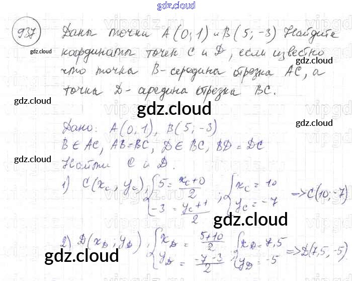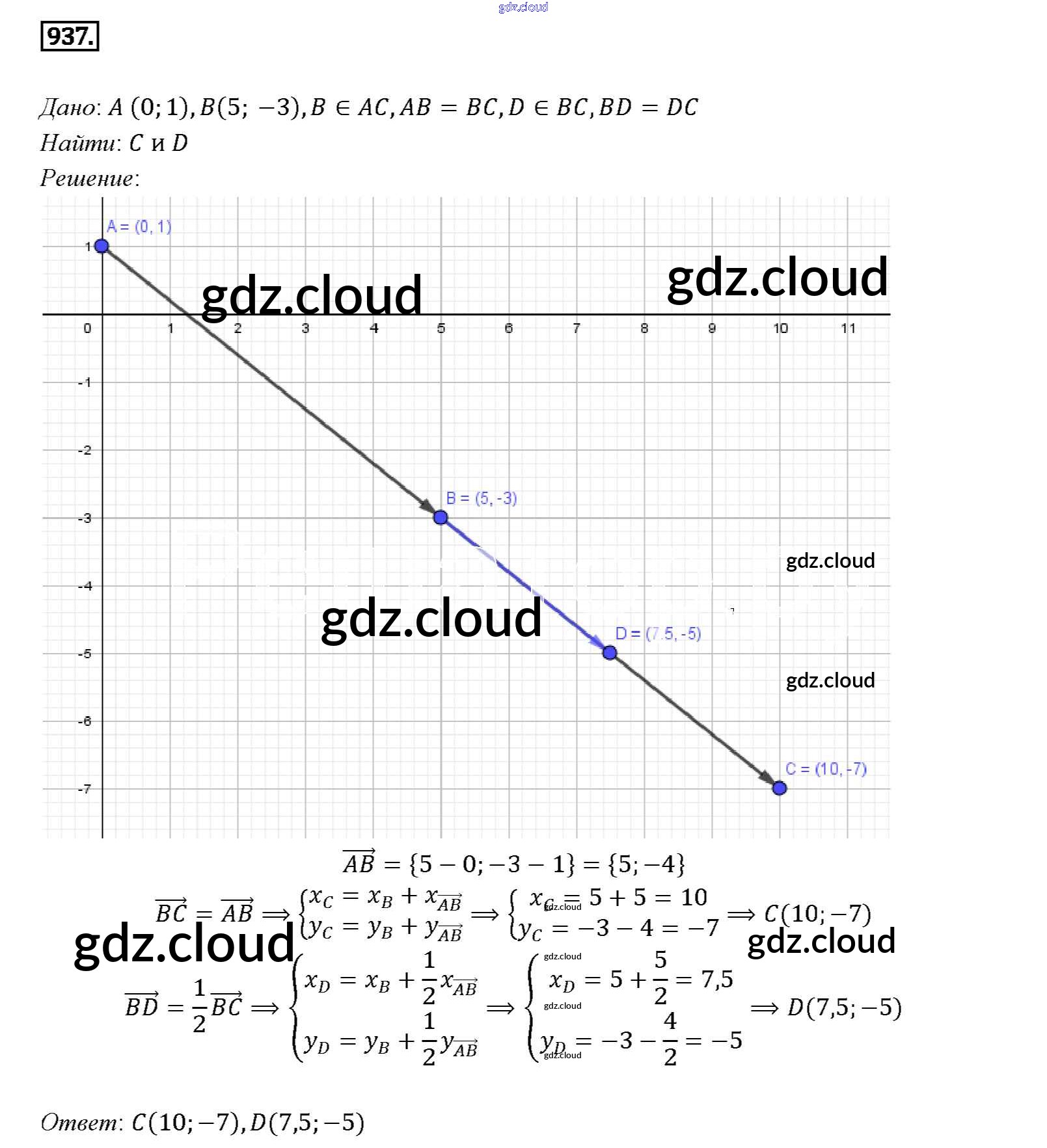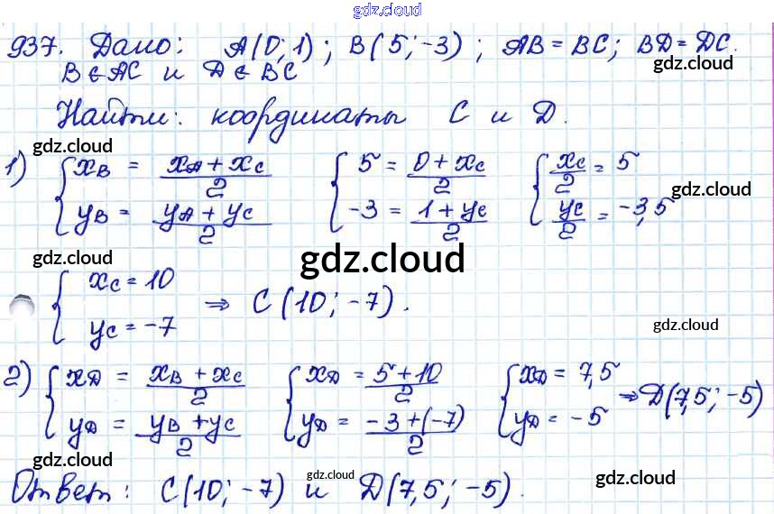 Ответ на задание 937 Учебник Геометрия за 7, 8, 9 (седьмой, восьмой, девятый) класс Атанасян, Бутузов, Кадомцев 2010