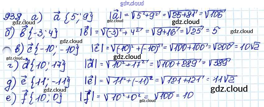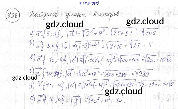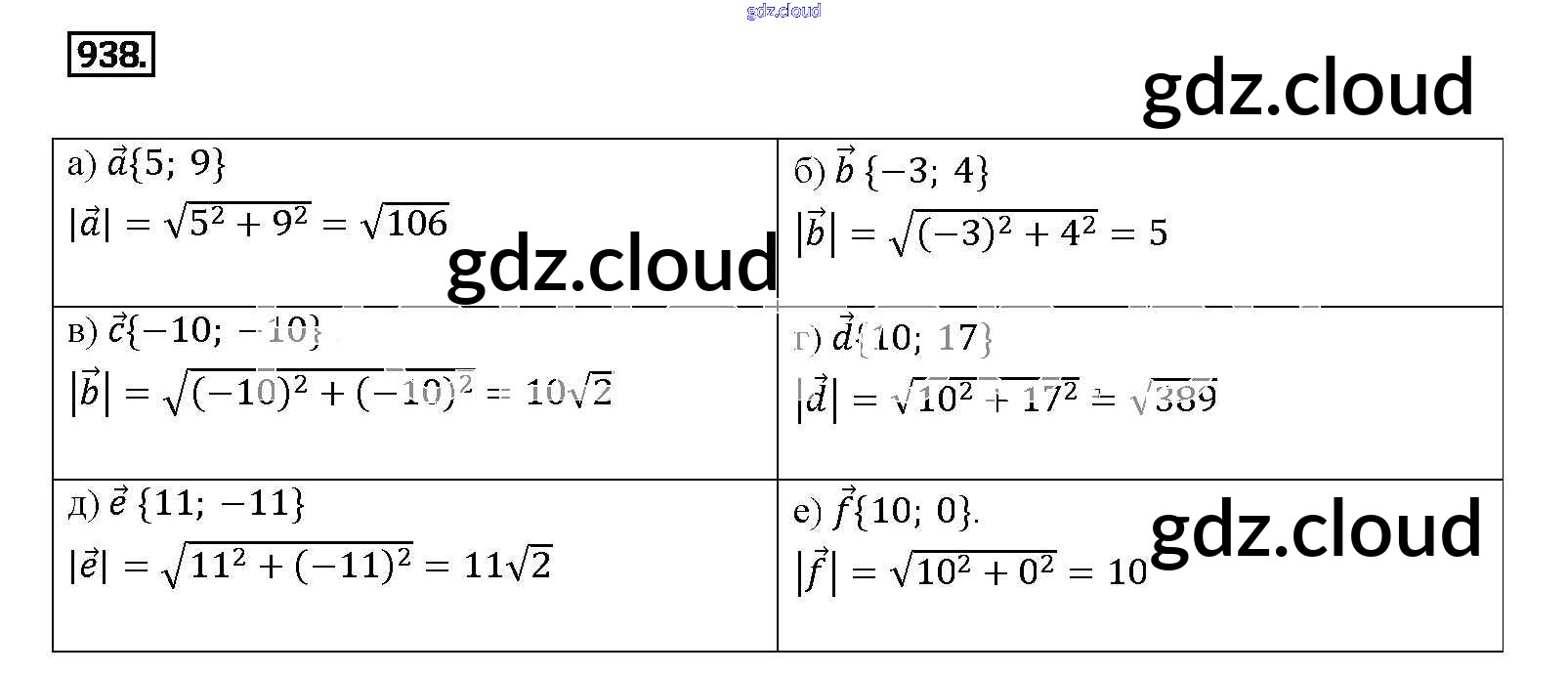 Ответ на задание 938 Учебник Геометрия за 7, 8, 9 (седьмой, восьмой, девятый) класс Атанасян, Бутузов, Кадомцев 2010