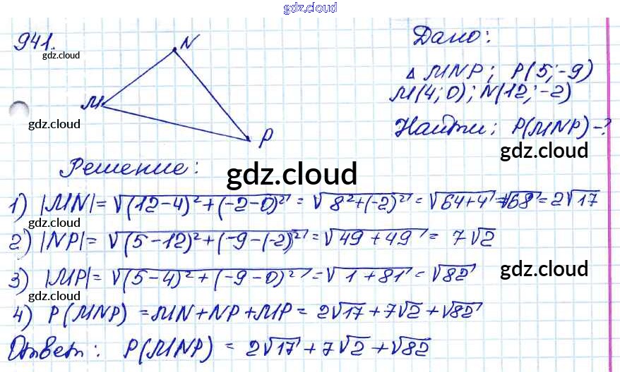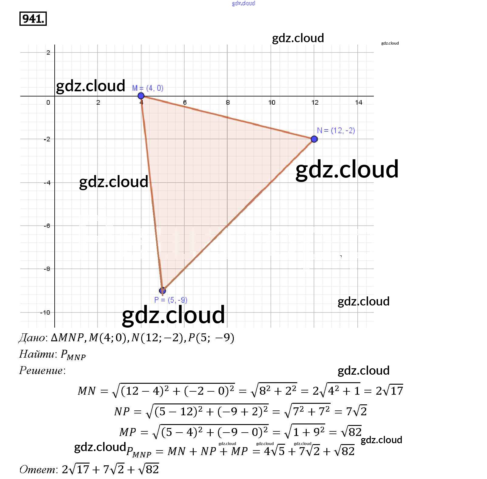 Ответ на задание 941 Учебник Геометрия за 7, 8, 9 (седьмой, восьмой, девятый) класс Атанасян, Бутузов, Кадомцев 2010